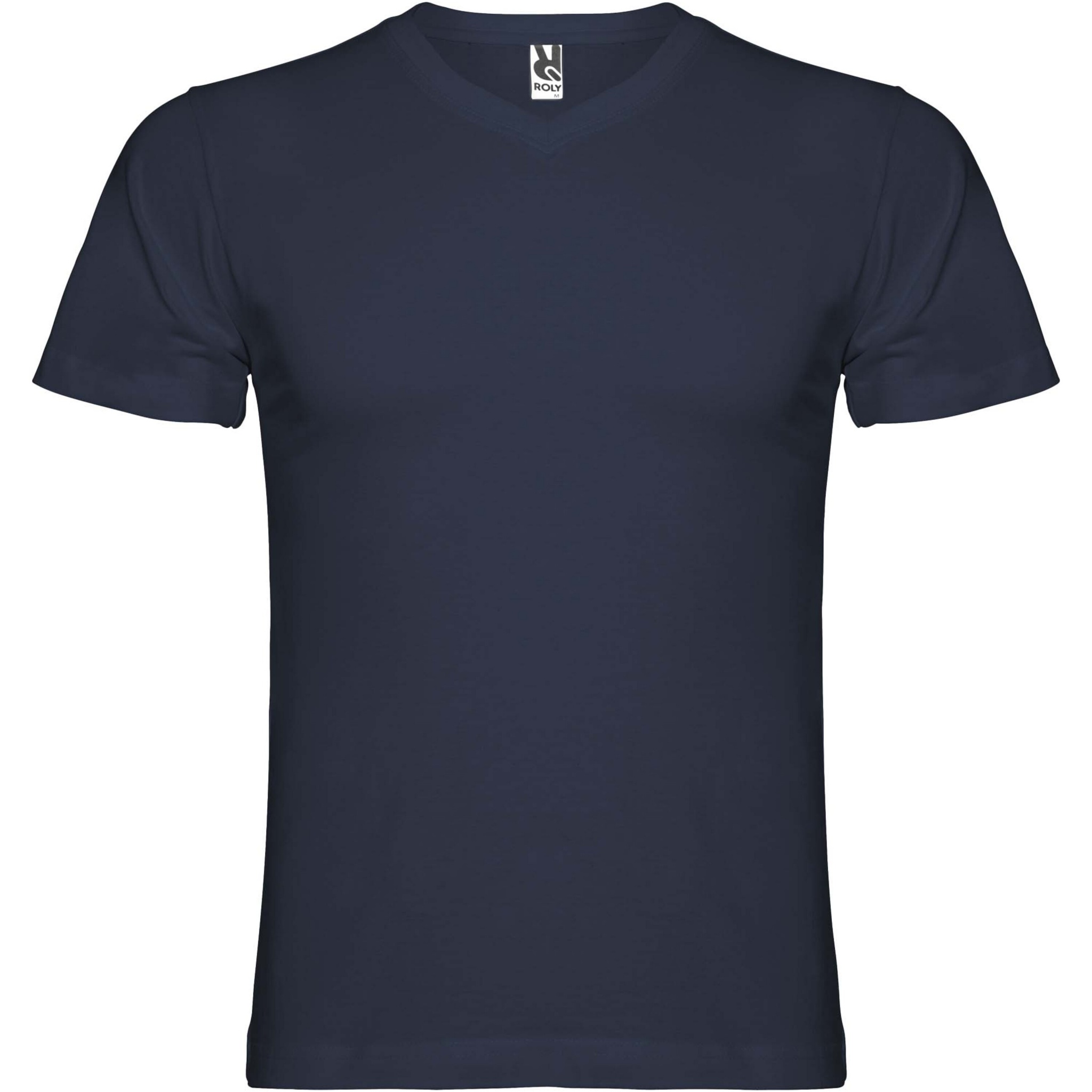 Torujas lühikeste varrukatega t-särk 2-kihilise v-kaelusega. Tugevdatud kaetud õmblused kraes ja õlgades. Eemaldatav etikett. Modell on 190 cm pikk ja kannab suurust L.