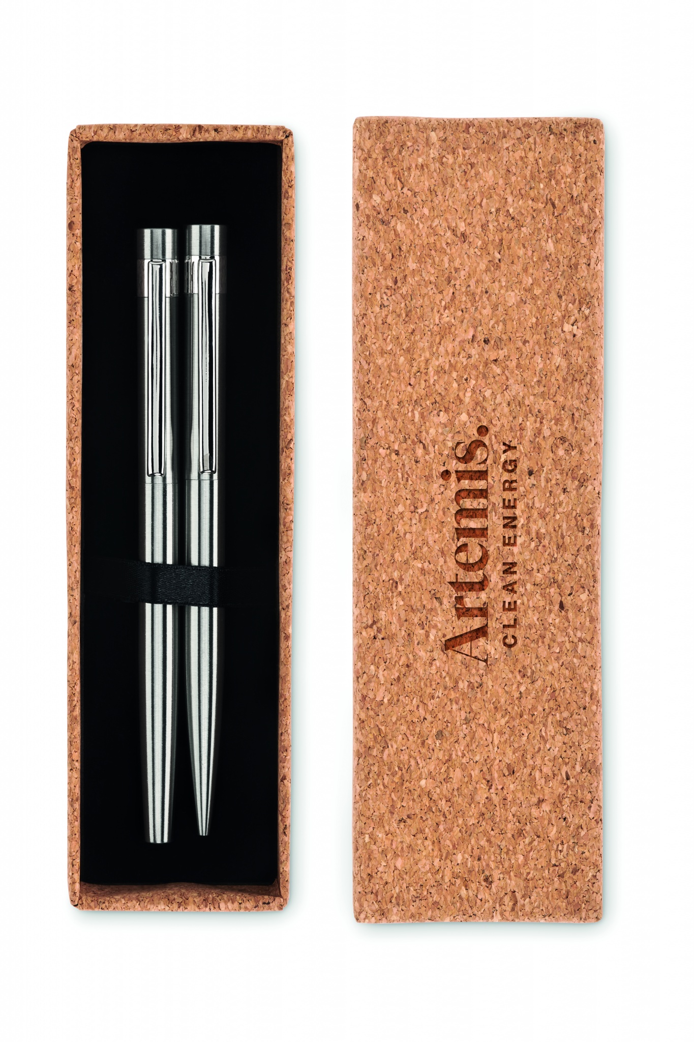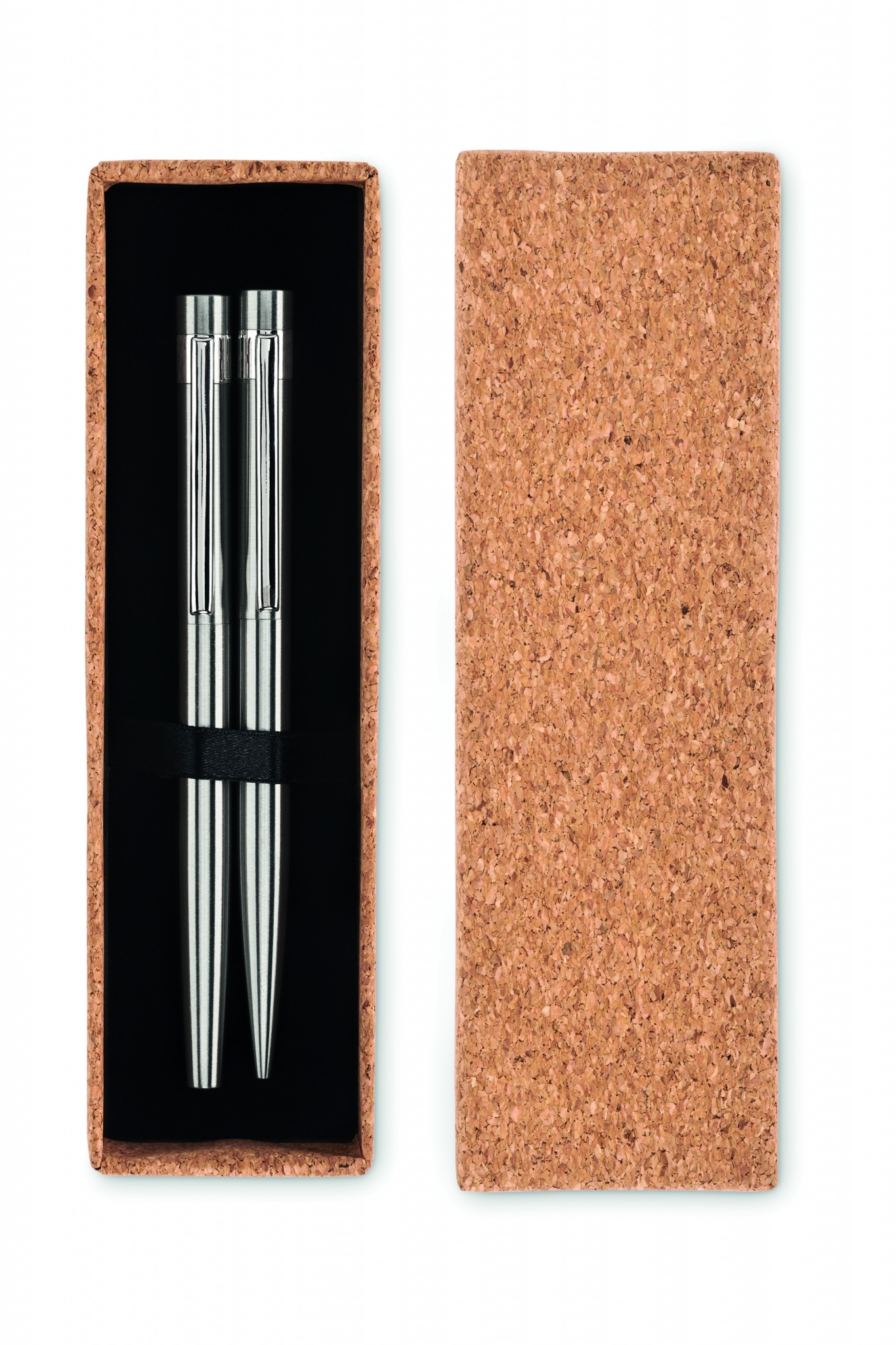 Taaskasutatud roostevabast terasest pastapliiatsi komplekt pastapliiatsi ja rullkuuliga. Esitatakse sobivas korkkarbis. Vastavalt sinine ja must tint. Kork on 100% looduslik materjal. Selle struktuurse olemuse ja pinna poorsuse tõttu võib lõpptulemus eseme kohta esineda kõrvalekaldeid.