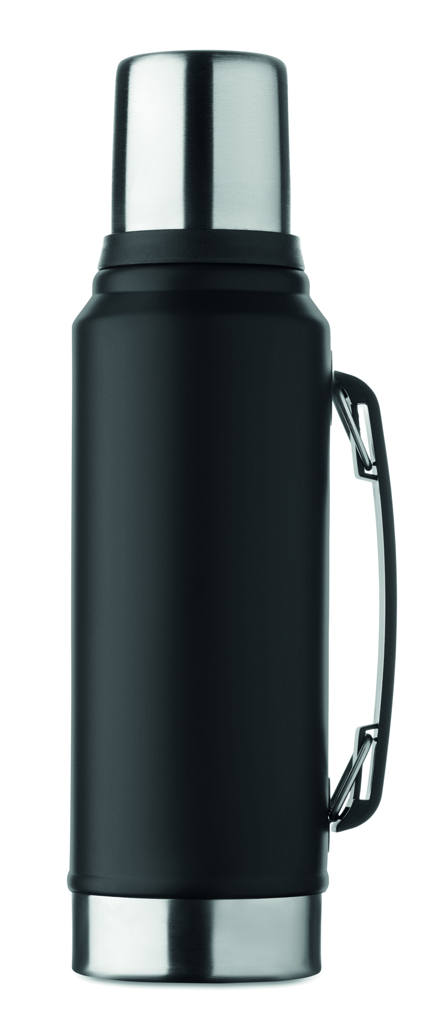 Topeltseinaga vaakumpudel taaskasutatud roostevabast terasest (90% taaskasutatud roostevabast terasest ja 10% roostevabast terasest), käepidemega. PP-kaane ja taaskasutatud roostevabast terasest topsiga. Lekkevaba. Mahutavus: 1 l.