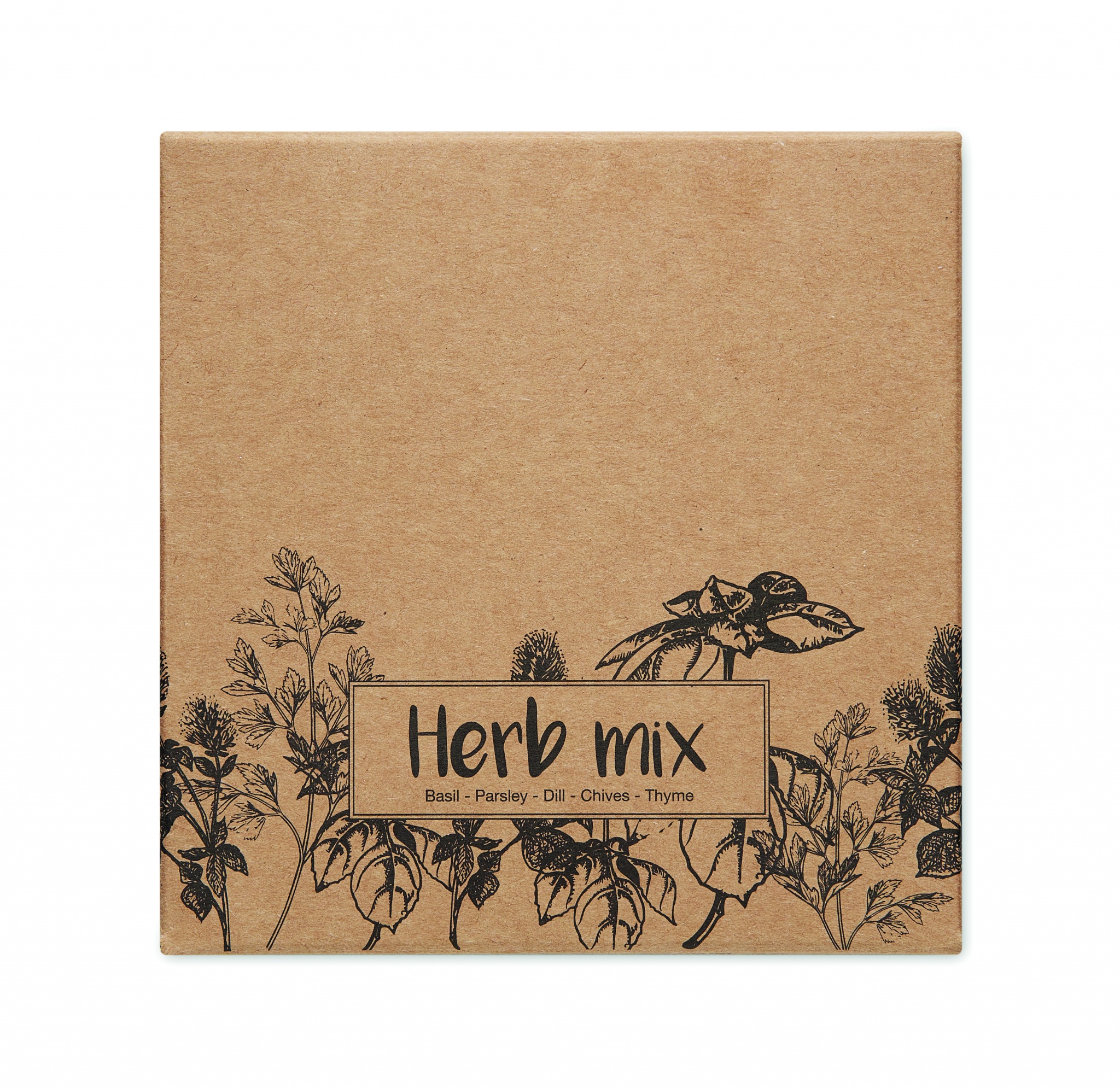 Ürdiseemneteip, mille tagaküljel on 3 meetrit. Basiilik, petersell, till, murulauk ja tüümianiseemned. Valmistatud EL-is.