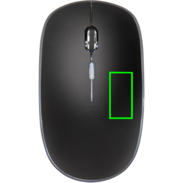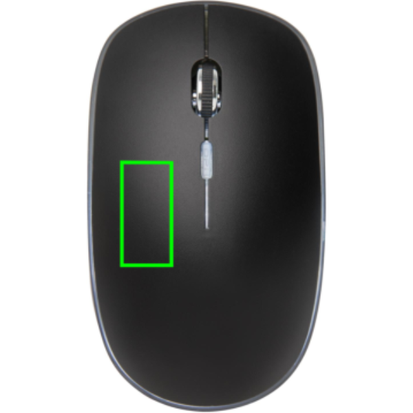 Mugav disain ja taaslaetav juhtmevaba hiir, millel on võimalus graveerida oma logo, mis süttib teie kaubamärgile lisaekspositsiooni suurendamiseks. Hiirel on taaslaetav 300 mah liitiumaku, mida saab laadida kolme tunniga. Ühenduskiirus 125 HZ kaasasoleva ja hõlpsasti paigaldatava USB-dongli kaudu. Vasaku ja paremklõpsu nupuga ja keskmise kerimis-/klõpsu nupuga. Hiire tundlikkust saab hõlpsasti kohandada vastavalt teie isiklikele eelistustele. Ühildub kõigi viimaste Windowsi ja Maci operatsioonisüsteemidega