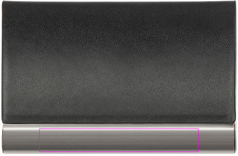 Metallist visiitkaardihoidja kunstnahast kaanega ja magnetkinnitusega. Logo on laseriga metallribale.