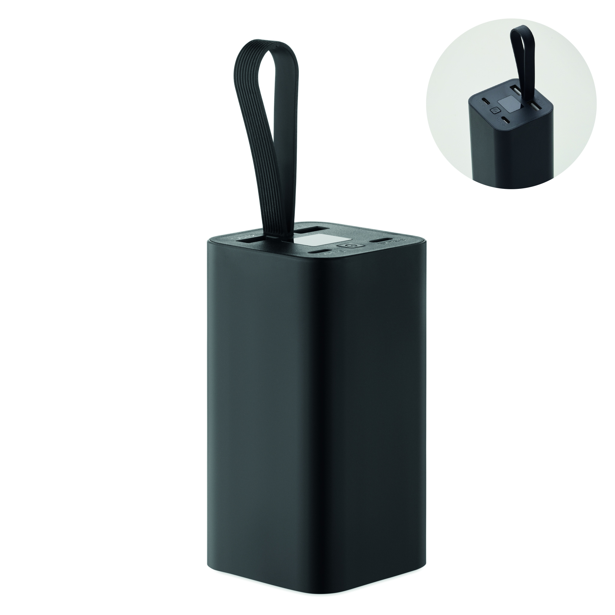 20 000 mAh akupank taaskasutatud alumiiniumist, digitaalse toitenäidiku ja silikoonist riputuskohaga. Kahe Type-C ja kahe USB-A väljundiga ning PD 65W kiirlaadimisega.