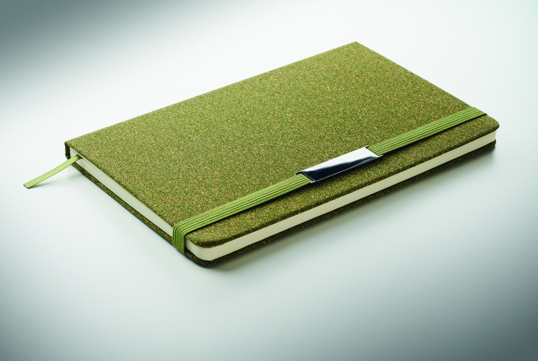 Kovakantinen A5-muistikirja, 160 viivoitettua kierrätyspaperisivua (80 arkkia/70 g/m²), kierretty metallinen kuulakynä ja avaimenperä. Yksityiskohdat on valmistettu 20 % teenporoista, 30 % korkista, 50 % polypuuvillakankaasta. Metalliset yksityiskohdat kuminauhassa . FSC®-certified | FSC MIX CREDIT, N7.1, FSC-C213206