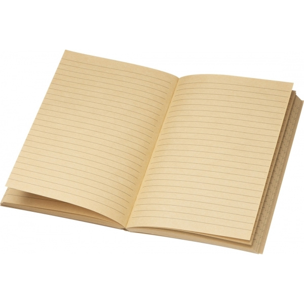 A5-kokoinen muistivihko, korkkikansi ja 192 kierrätettyä vuorattua sivua. Painamme logosi kanteen.