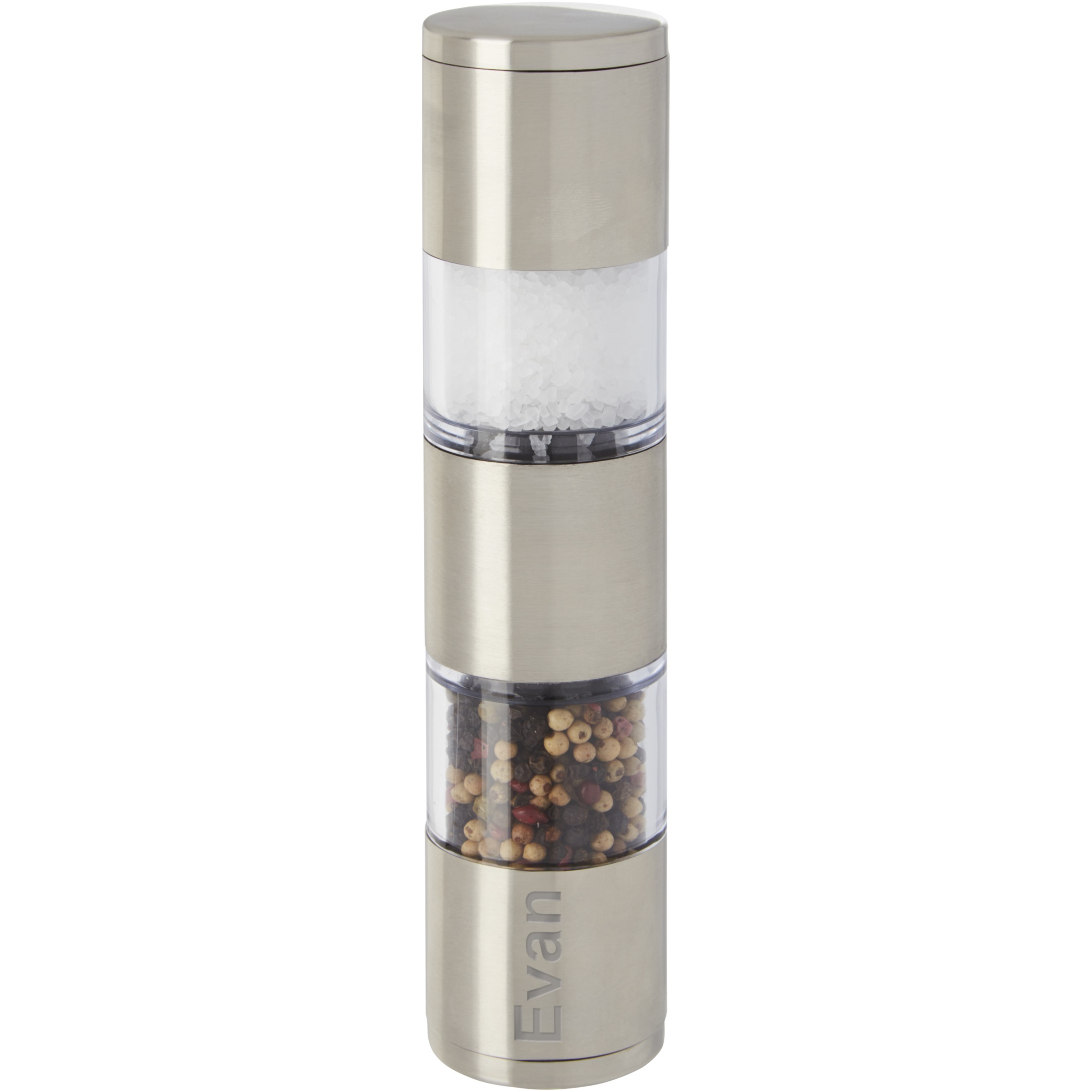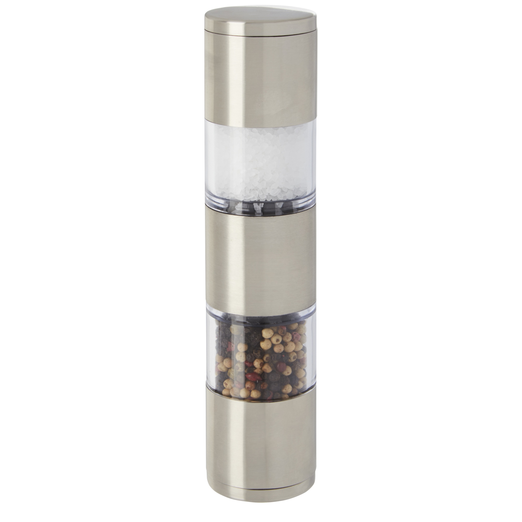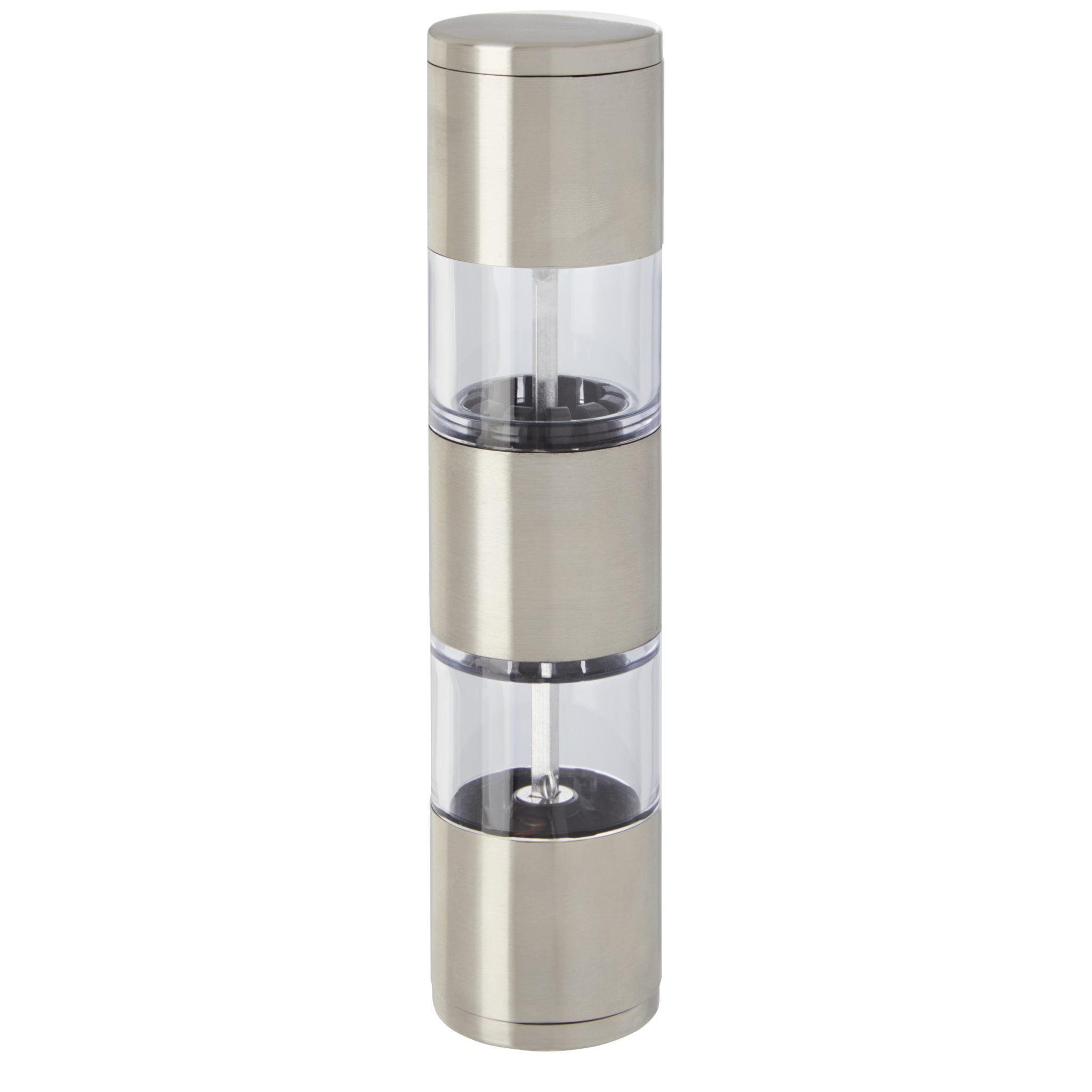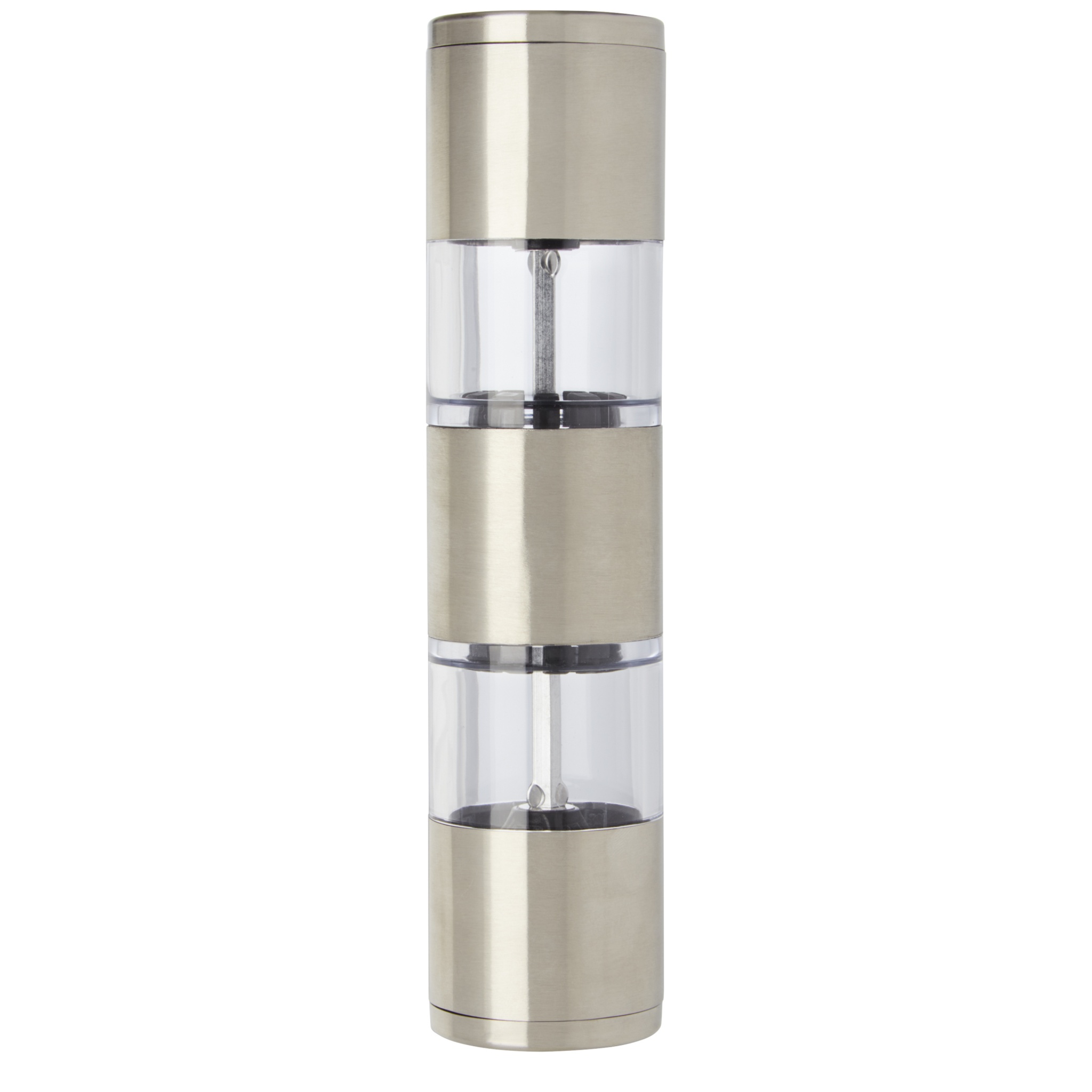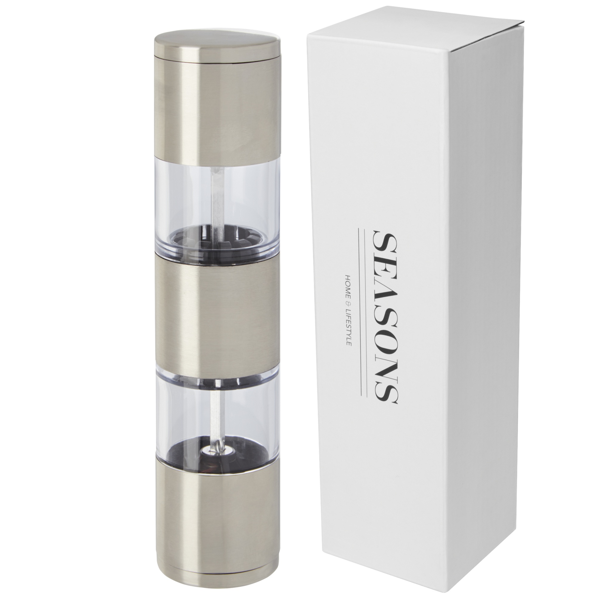 Kaksipäinen mylly, jonka toinen pää on suolaa ja toinen pippuria varten. Pippuri ja suola eivät sisälly hintaan.