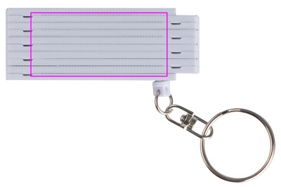 Avaimenperä taitettavalla muoviviivaimella, mittausalue jopa 0,5 metriä. Logosi painetaan viivaimeen.