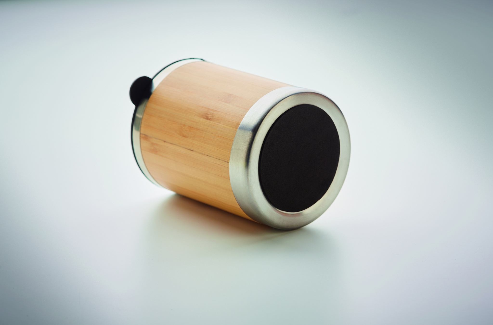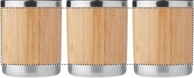 Kaksiseinäinen ruostumattomasta teräksestä valmistettu 250 ml take away muki, bambu kuorella. Luonnollisen materiaalin (bambu) vuoksi, tuotteiden värissä/ koossa saattaa olla erinäisyyksiä ja tämä voi vaikuttaa painatuksen lopputulokseen.