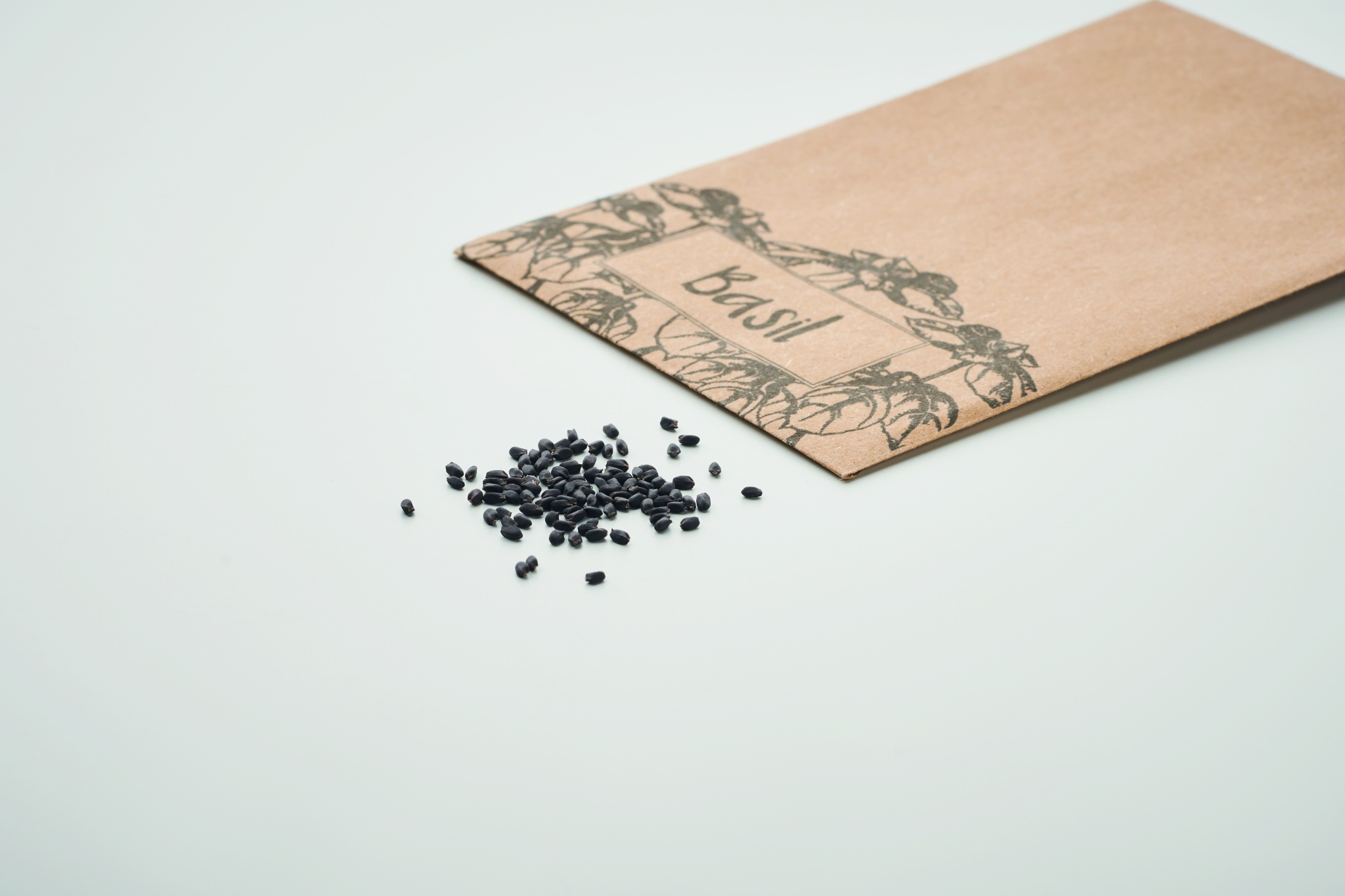 Basilikansiemenet voimapaperikuoressa.