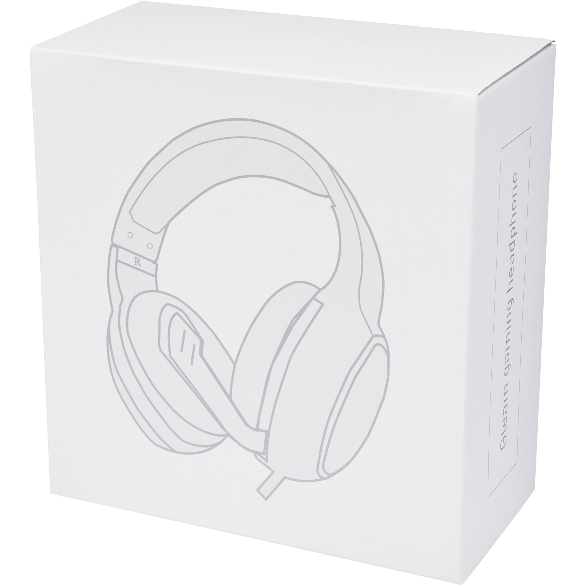 Gleam-pelikuulokkeissa on korkealaatuinen stereoääni ja ensiluokkainen sisäänrakennettu mikrofoni. Mukana 2 metrin kaapeli 3,5 mm:n AUX-liittimellä ja USB-A-liitännällä. 3,5 mm:n Aux-tulo liittää äänen ja mikrofonin tietokoneeseen tai mobiililaitteeseen. Mukana on Type-C-lisäsovitin laitteille, joissa on Type-C-tulot. Pelikuulokkeiden mukana toimitettavien sovittimien ja sisäänrakennetun kaapelin ansiosta pelikuulokkeet sopivat kaikkiin yleisimpiin pöytätietokoneisiin, kannettaviin, matkapuhelimiin, tabletteihin, PlayStationiin ja Nintendo Switchiin. Helppo asentaa ilman erityisiä ajureita. Kuulokkeiden sisäänrakennettu äänenvoimakkuuden säädin helpottaa äänenvoimakkuuden säätämistä, ja pehmusteiden sekä säädettävän pääpannan ansiosta kuulokkeiden käyttäminen on miellyttävää. Kuulokekuppeihin voidaan tehdä laserkaiverrus, joka mahdollistaa valotoiminnon. Toimitetaan lahjapaketissa, joka on valmistettu luontoa säästävistä materiaaleista.