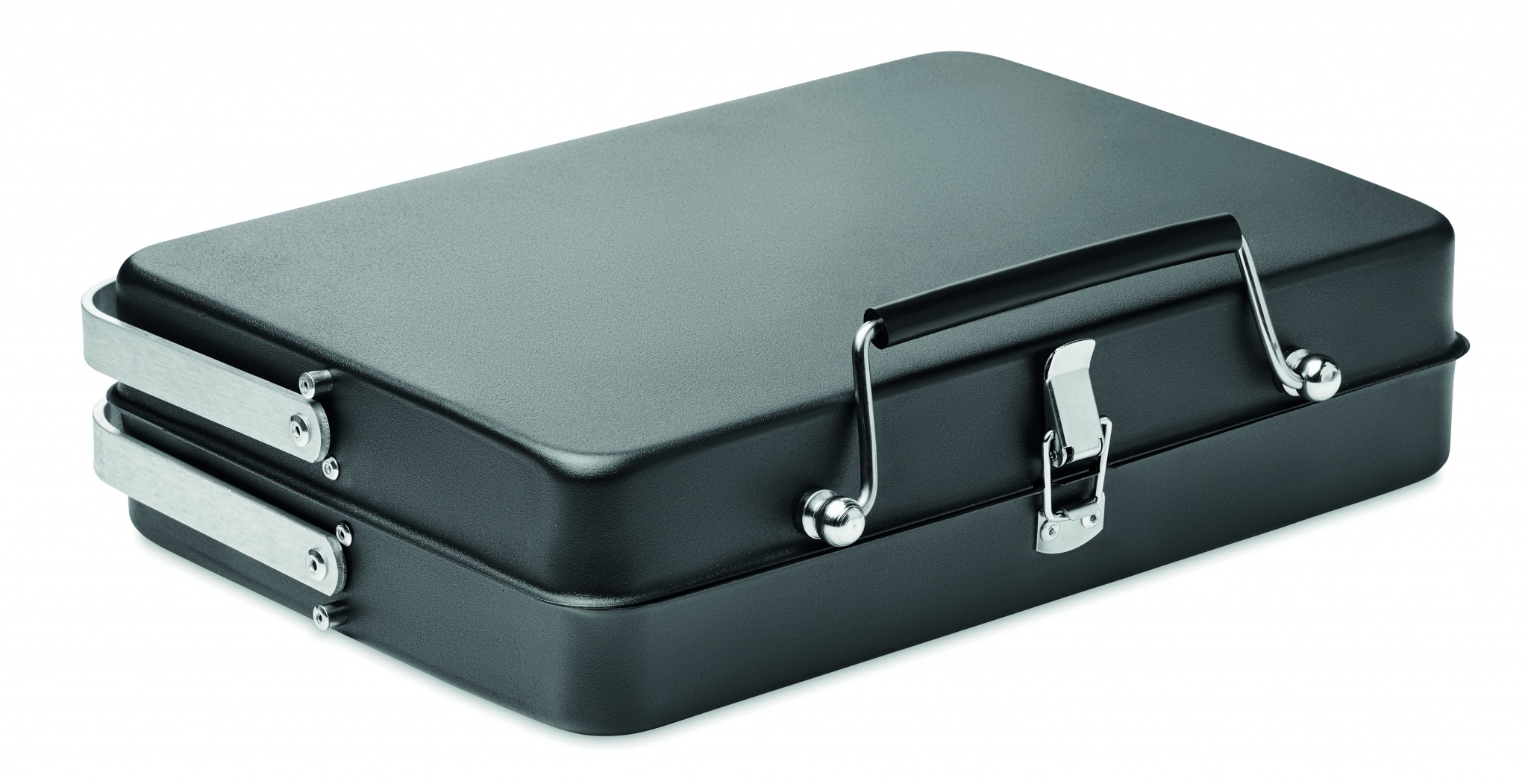 Ruostumattomasta teräksestä valmistettu mukaan otettava grilli, tuote taittuu kokoon. Tuotteen koko avattuna 27.3x18.6x10 cm ja taitettuna 27.3x18.6x5.5 cm