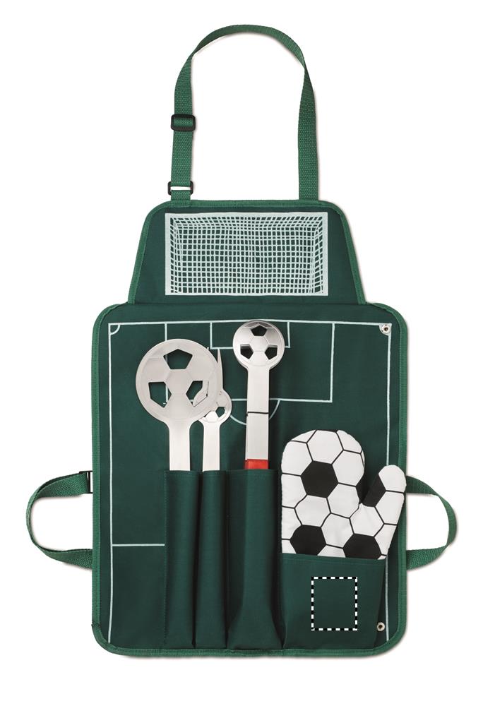 600D polyesterinen esiliina, grillivälineet jalkapallo kuosilla.