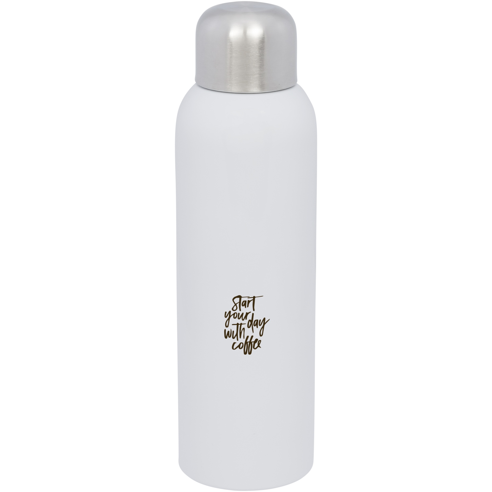 Guzzle on tyylikäs kierrätetyistä materiaaleista valmistettu vesipullo, jonka kierrettävän korkin avulla sen avaaminen ja sulkeminen on vaivatonta. Yksiseinäinen pullo sopii loistavasti janoisiin hetkiin, sillä sen tilavuus on jopa 820 ml. Pullo on valmistettu RCS-sertifioidusta kierrätetystä ruostumattomasta teräksestä ja on siksi kestävä ja pitkäikäinen. Lisäksi pullossa on runsaasti tilaa minkä tahansa logon tai viestin yksilölliseen painattamiseen.