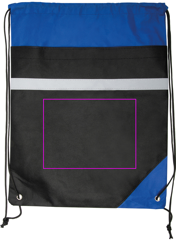 Kuitukangaspussi, jossa on heijastinnauha. Logosi painetaan mustaan alaosaan.