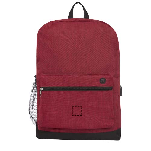 Reppu kannettavalle tietokoneelle. Meleerattu väritehoste etupaneelissa ja musta väri alaosassa ja takapaneelissa. Avara vetoketjullinen päälokero ja pehmustettu 15,6”:n suojatasku kannettavalle tietokoneelle. Vetoketjullinen etulokero antaa nopean pääsyn mobiililaitteisiin. Mukana USB-portti ja USB-A-kaapeli, jossa on 1 urosliitin ja 1 naarasliitin. Mukana kätevät pehmustetut olkahihnat, kantokahva ja verkkotasku vesipullolle. Varsinaisen tuotteen väri saattaa vaihdella hieman kangasvärien, kudonnan ja painatusten vuoksi.