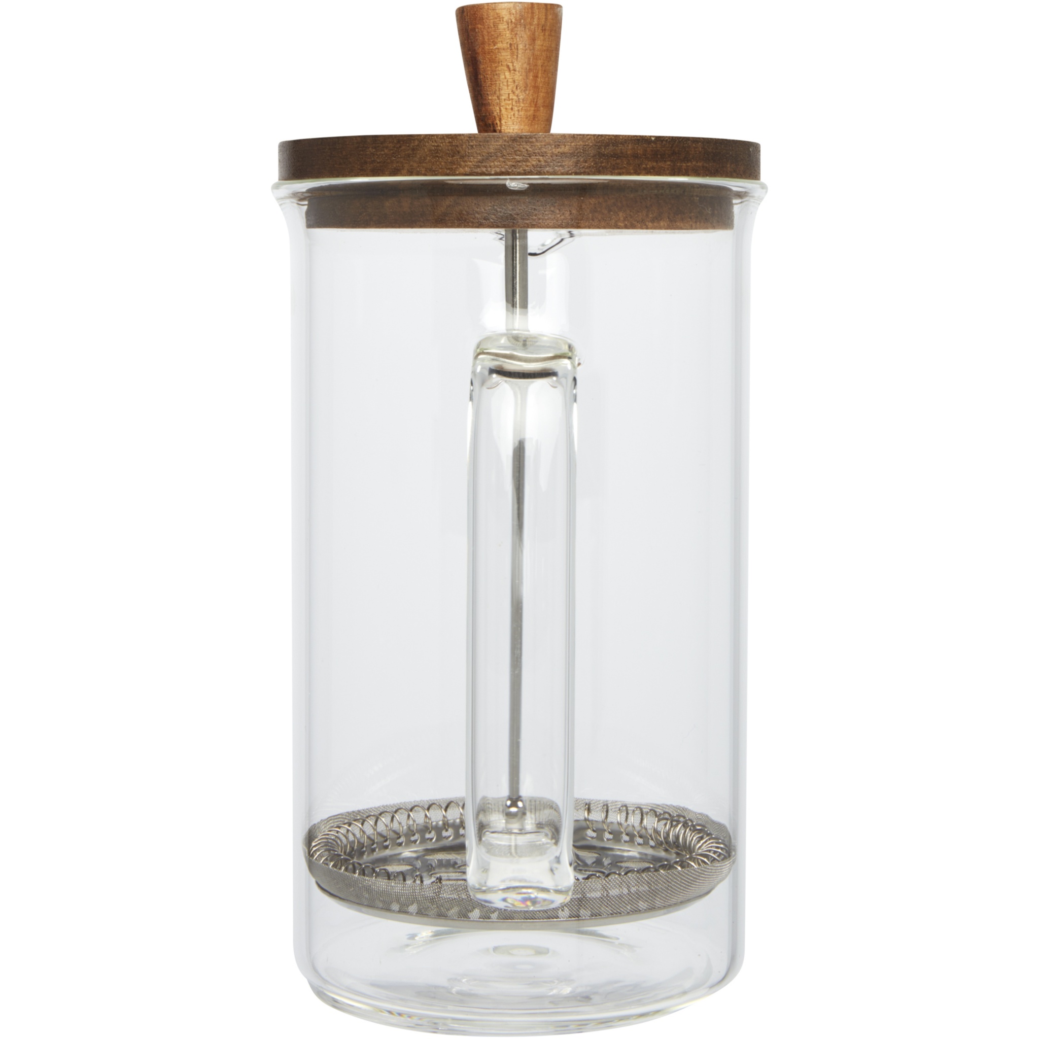 Tyylikkäästi muotoiltu pressopannu, jossa on akaasiapuinen kansi kestävistä, ympäristöllisesti ja sosiaalisesti vastuullisista lähteistä. Tilavuus on 600 ml. Valmista kolme kupillista tuoretta kahvia muutamassa minuutissa. Lisää karkeaksi jauhettu kahvi lasikannuun. Täytä kuumalla vedellä ja anna hautua oman makusi mukaiseksi. Paina mäntä hitaasti alas. Kahvisi on valmista! Voit valmistaa myös teetä, kaakaota, maitoa, hedelmäteetä ja sitruunamehua. Borosilikaattilasi tekee pressopannusta paitsi todellisen katseenvangitsijan keittiössäsi, myös keskeisen osan seikkailuitasi ja retkiäsi.