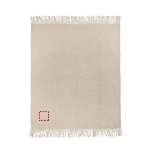 Erittäin pehmeä GRS Sertifioitu RPET-peitto, kääritty 190T RPET -nauhalla. Pakattu kierrätettyyn muovipussiin. Hapsujen pituus: 10 cm kummallakin puolella. Nauhan koko: 72 cm x 4 cm.