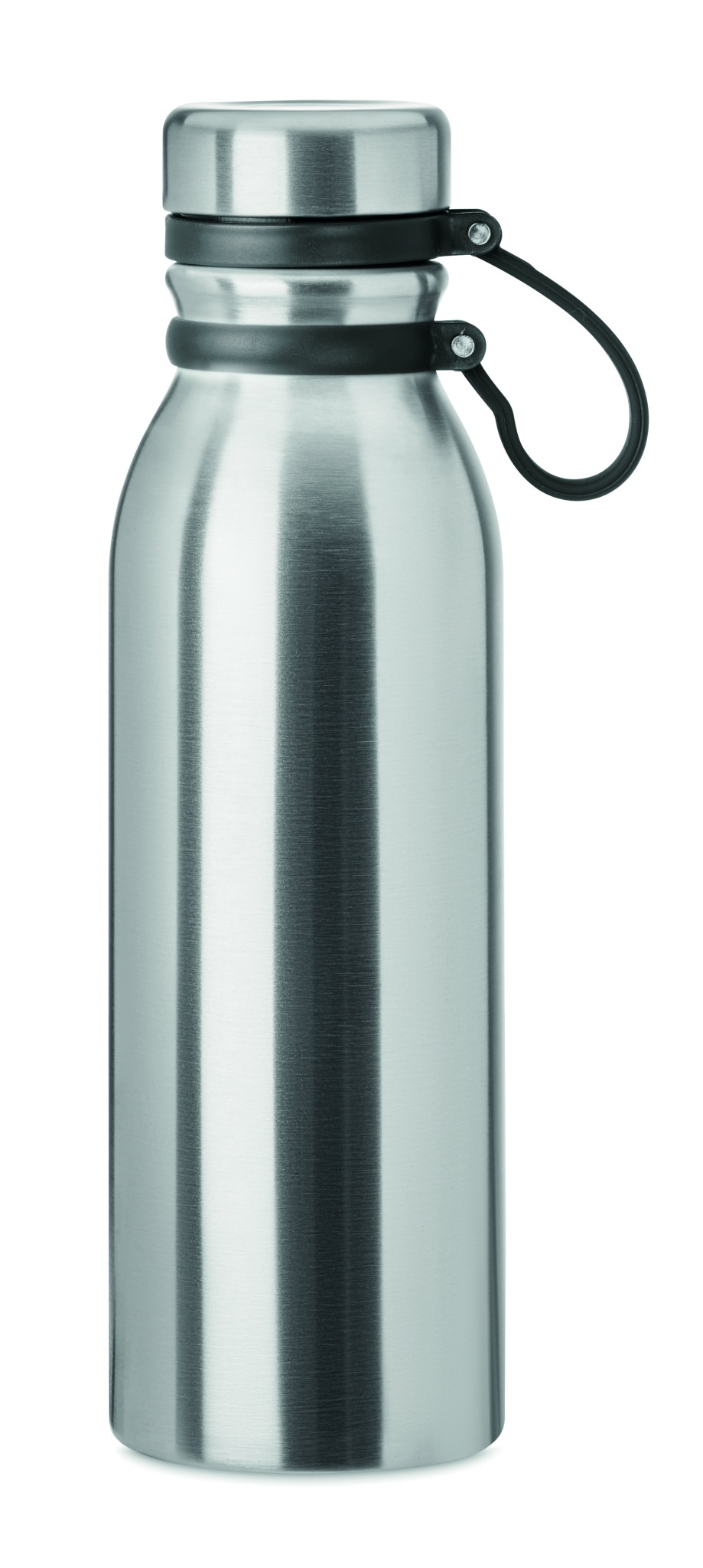 Kaksiseinäinen ruostumattomasta teräksestä valmistettu 600 ml juomapullo, tuote on BPA ja vuoto vapaa.