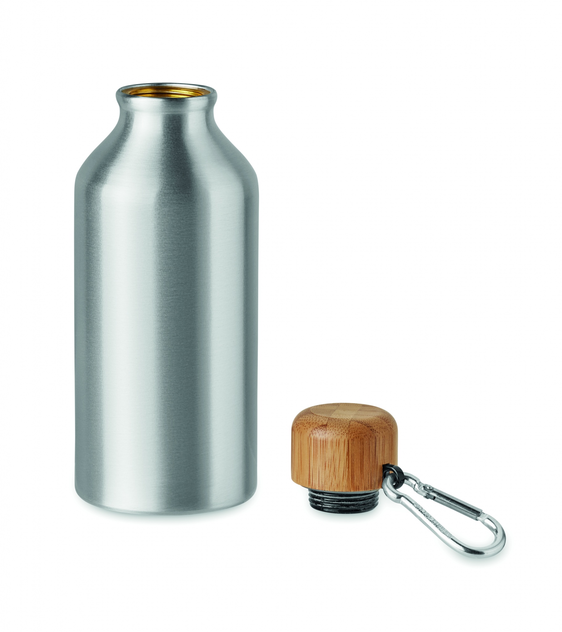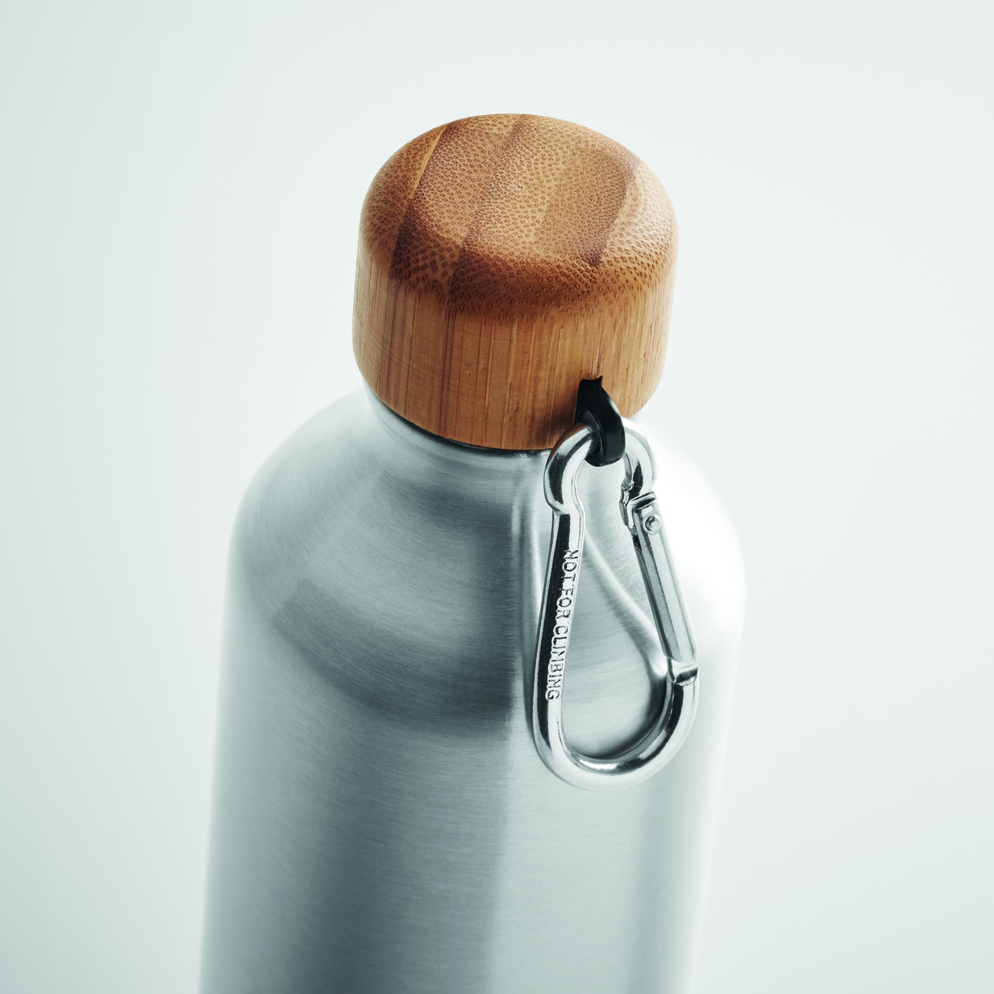 Alumiininen 800 ml juomapullo bambu korkilla ja karabiinikoukulla, karabiinikoukkua ei ole tarkoitettu kiipeilemiseen (ei ammattikäyttöön) Luonnollisen materiaalin (bambu) vuoksi, tuotteiden värissä/ koossa saattaa olla erinäisyyksiä ja tämä voi vaikuttaa painatuksen lopputulokseen.