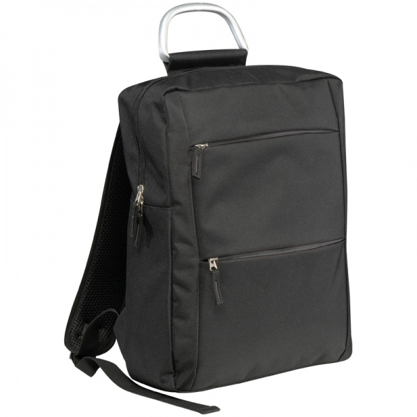 Kannettavan tietokoneen reppu uudella viehättävällä muotoilulla, jossa on useita sisätaskuja ja kaksi ulkotaskua. Logosi painetaan keskelle etupuolelle.