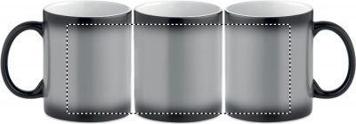 Keraaminen muki 300 ml, erikoispinnoite sublimaatiota varten. Muki muuttaa väriä ja tuo esiin painatuksen, kaadettaessa mukiin (vähintään) 50 ° C lämpöistä nestettä. Yksittäispakattuna valkoiseen pahvilaatikkoon.