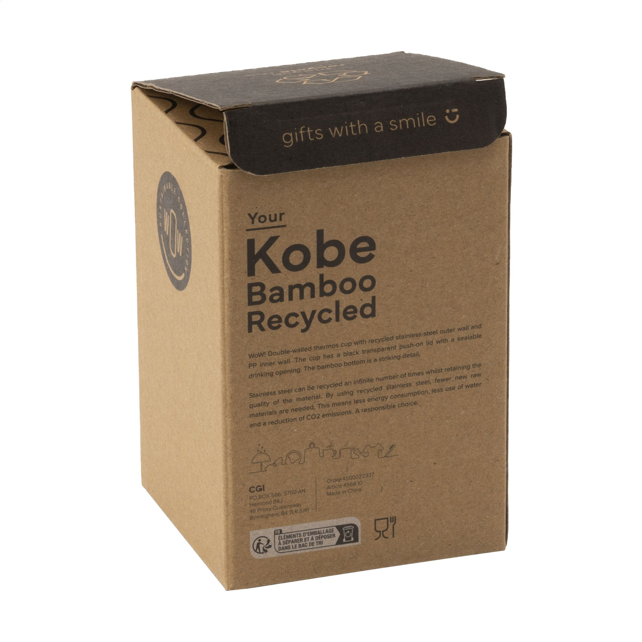Vau! Kaksiseinäinen termoskuppi, jossa kierrätetystä ruostumattomasta teräksestä valmistettu ulkoseinä ja PP-sisäseinä. Kupissa on musta läpinäkyvä työnnettävä kansi, jossa on suljettava juoma-aukko. Bambupohja on silmiinpistävä yksityiskohta, jonka paksuus on 1,5 cm. RCS-sertifioitu. Kierrätysmateriaalia yhteensä: 38 %. Tilavuus 350 ml. Ruostumaton teräs voidaan kierrättää äärettömän monta kertaa materiaalin laadun säilyttäen. Käytettäessä kierrätettyä ruostumatonta terästä tarvitaan vähemmän uusia raaka-aineita. Tämä tarkoittaa pienempää energiankulutusta, vähemmän veden käyttöä ja CO2-päästöjen vähenemistä. Vastuullinen valinta. Jokainen tuote toimitetaan erillisessä ruskeassa pahvilaatikossa.