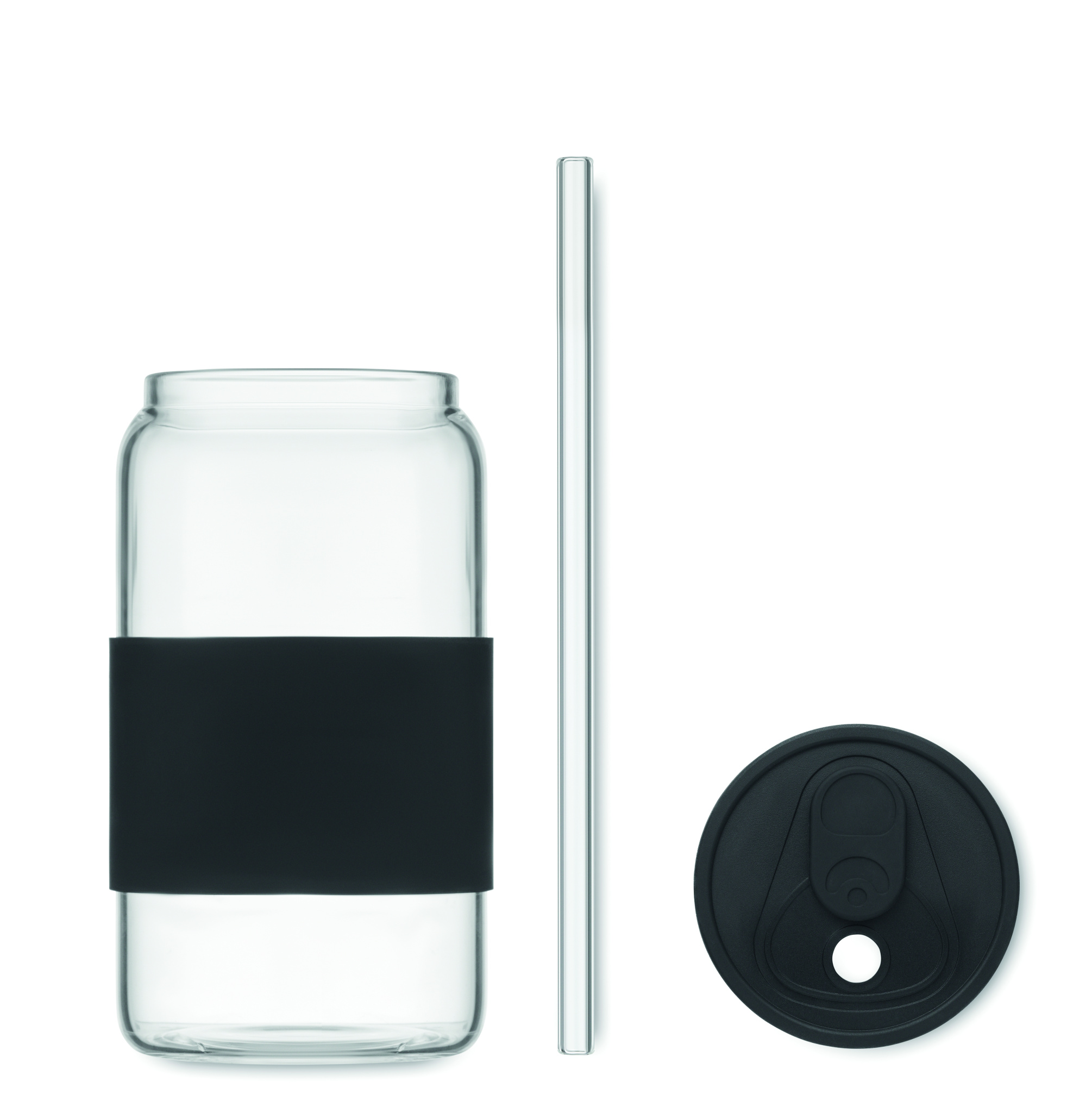 Korkeaborosilikaattilasinen juomalasi, jossa silikonikansi ja kahva. Sisältää borosilikaattilasin pillin. Tilavuus: 550 ml.