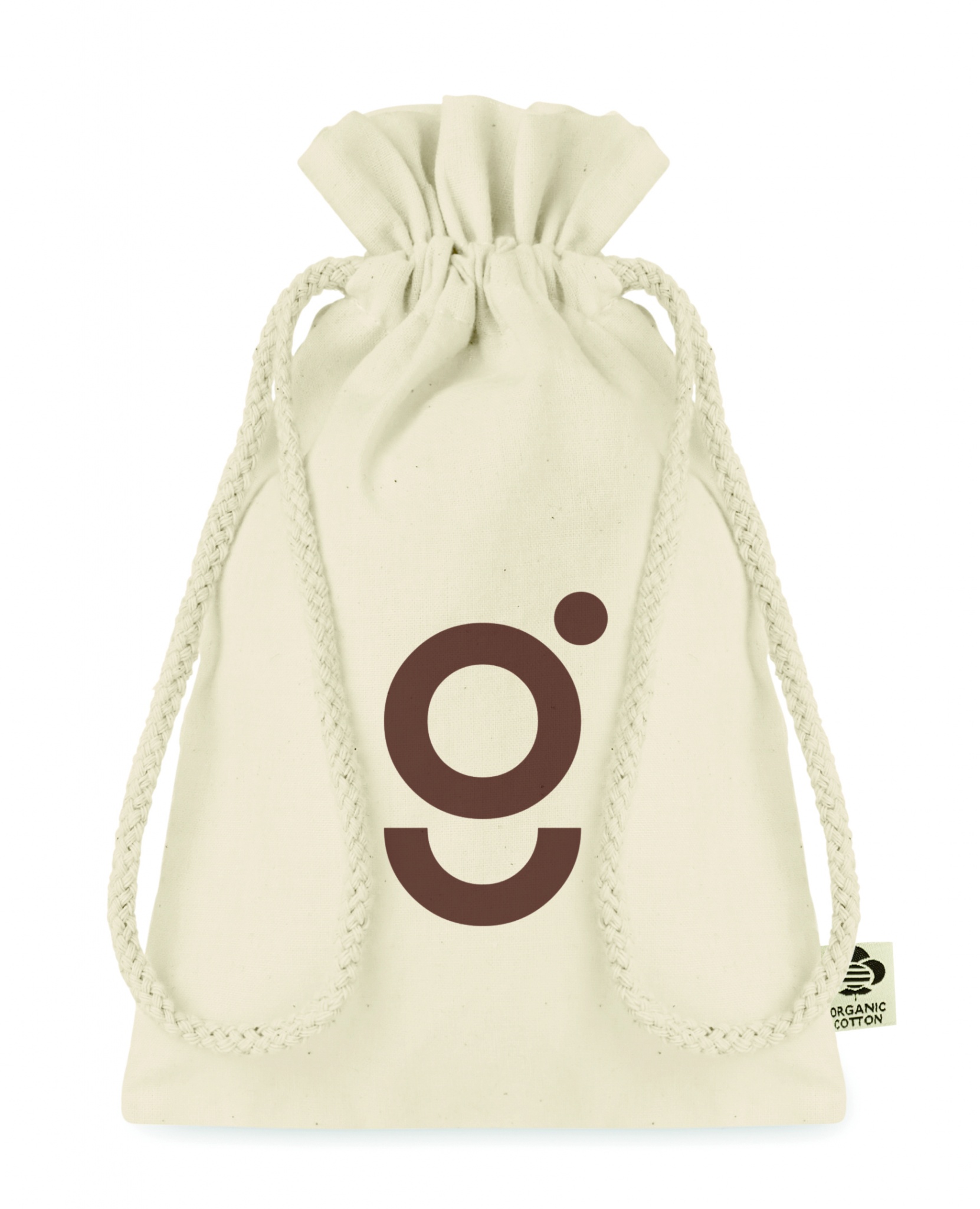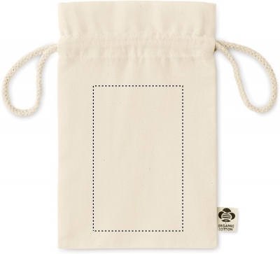 105 gr/m² pieni orgaanisesta puuvillas valmistettu pussi, kiristysnauhalla.