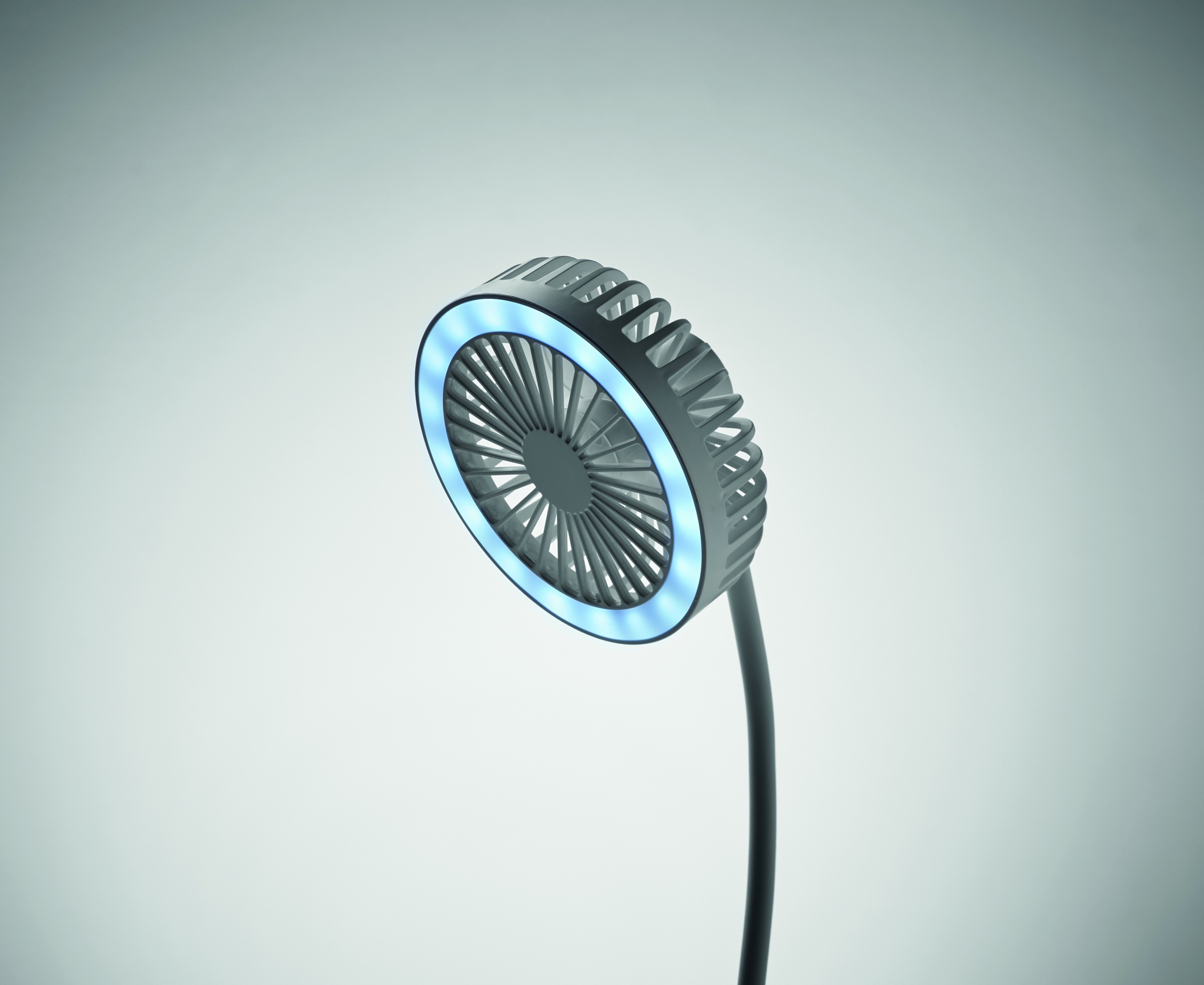 ABS-pöytätuuletin, jossa on 3 nopeusasetusta, lisäksi 10 W:n langaton laturi ja LED valo. Teho: DC 9V/1.1A (10W) pikalatausta varten. Yhteensopiva Android, iPhone® 8:n ja uudempien kanssa.