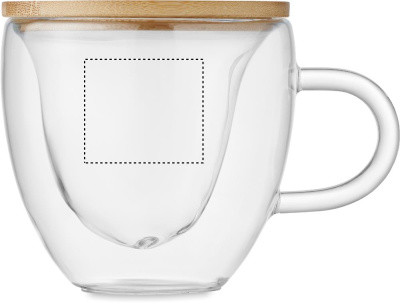 Kaksiseinäinen borosilikaattilasimuki sydämen muotoisena bambukannella. Tilavuus: 180 ml.