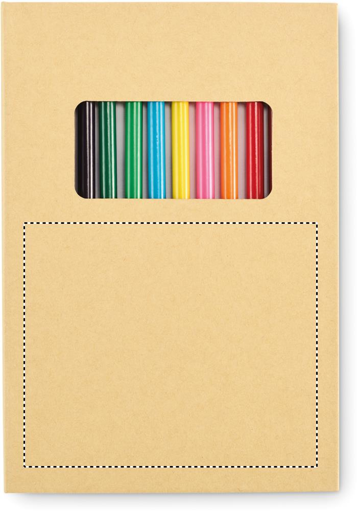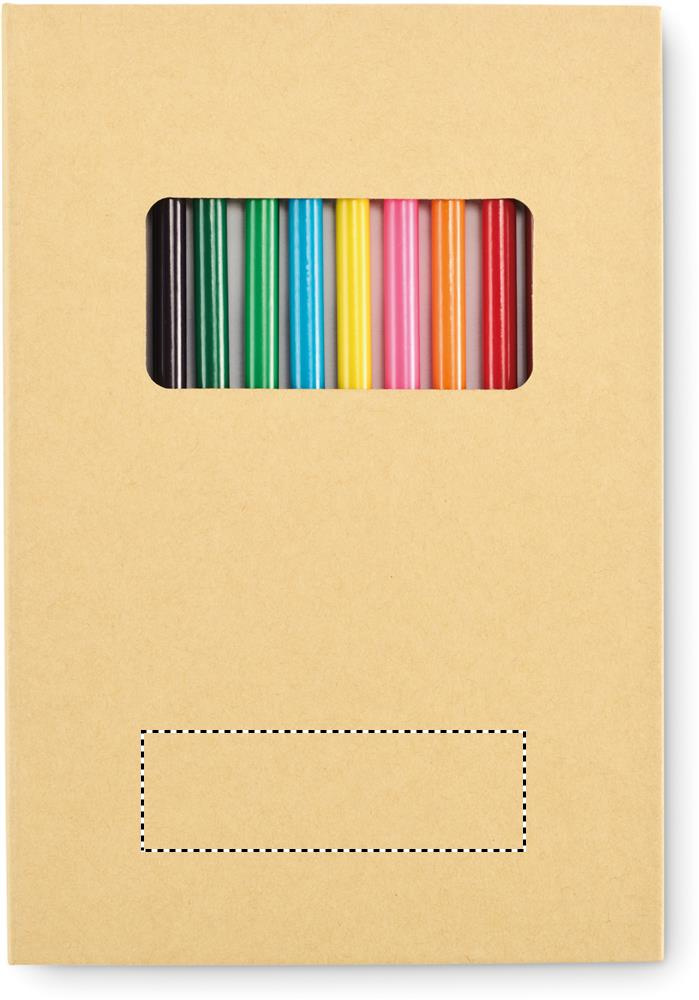 Lasten piirustussetti, jossa on 50 kierrätyspaperiarkkia ja 12 puista värikynää. Kannet kraftpaperia.