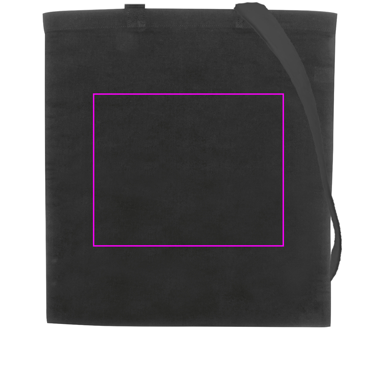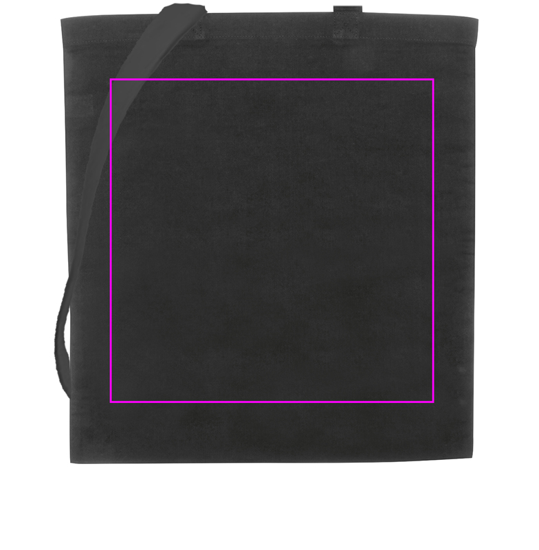 Sertifioitu Öko-Tex® STANDARD 100, luomupuuvillapussi, neliöpaino 180 g/m² ja kaksi pitkää kahvaa. Painamme logosi pussin toisen puolen keskelle.