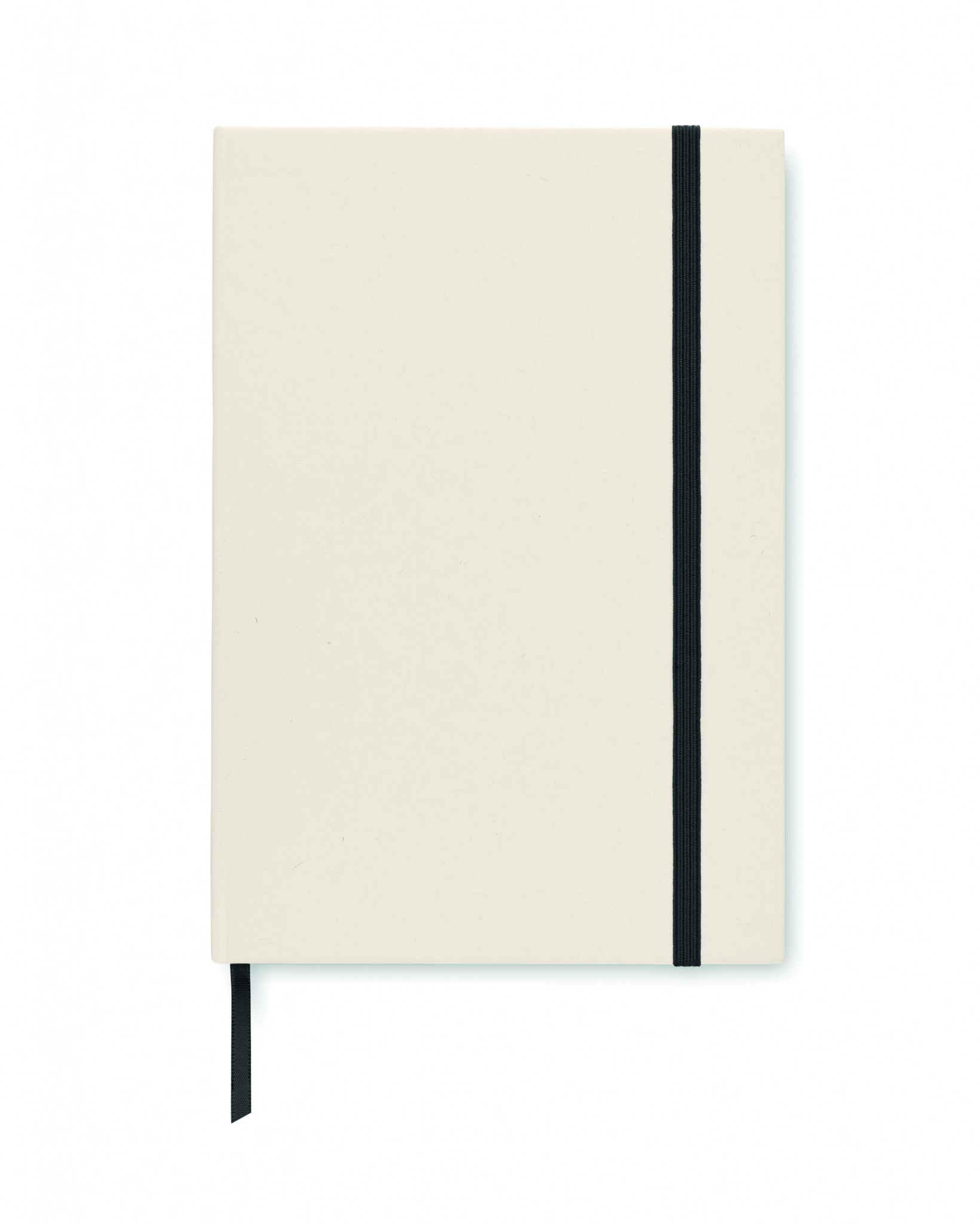 Kierrätysmateriaalista valmistettu A5 muistikirja kovalla kannella. Materiaali on 70% maitopurkeista tehtyä kierrätyskartonkia ja 30 % kierrätyspaperia. Sisällä 160 viivoitettua sivua (80 arkkia 80 g/m²) kierrätyspaperia. Suljetaan kuminauhalla ja muistikirjassa on kirjanmerkki.