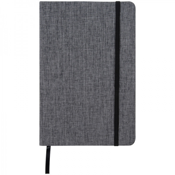A5-muistikirja, jossa on tyylikäs 300D-kanvas polyesterikansi, musta kumisuljin ja kirjanmerkki. 160 riviä sivua. Painamme logosi kanteen.