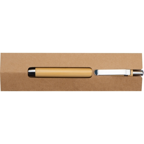 Musteeton kuulakärkikynä bambusta. Lyijy on valmistettu grafiitin ja metallin sekoituksesta, mikä tekee siitä erittäin kestävän. Laserkaiverramme logosi pidikkeen oikealle puolelle