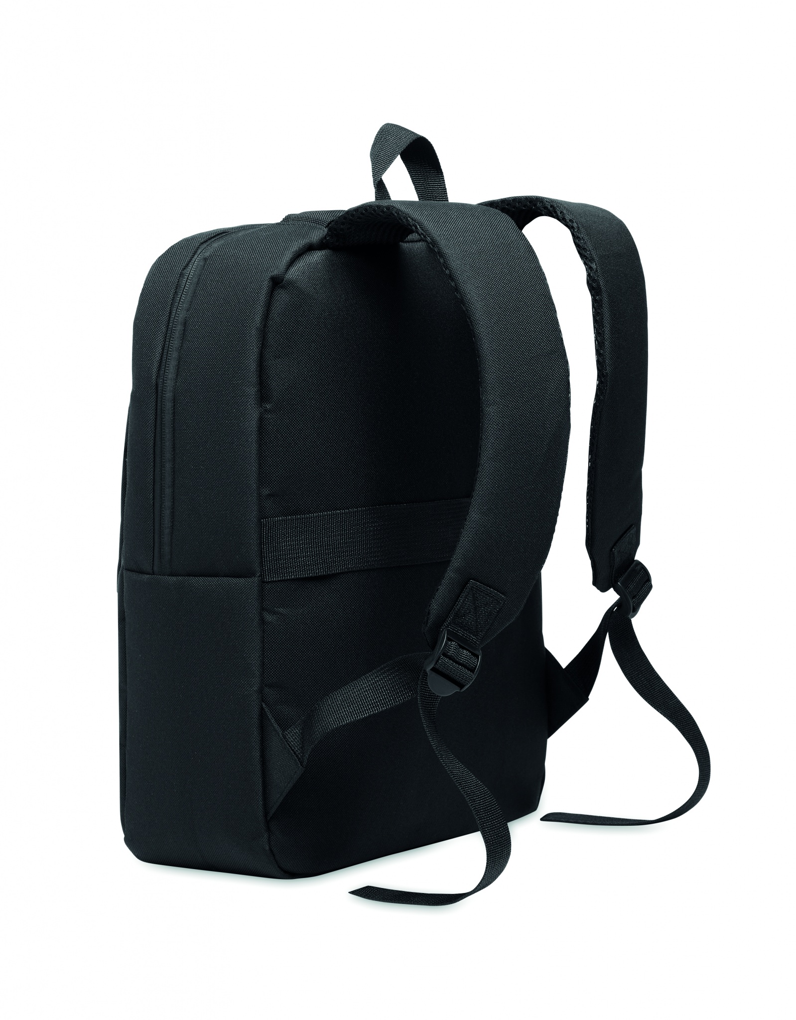 Ohut reppu 600D RPET polyesteriä ja 210D vuori. Siinä on 15"" lokero tietokoneelle. Sisältää taskun 10'' '' tabletille vetoketjulla, 2 sisätaskua, 2 kynätaskua, vetoketjullinen etutasku. 2 sivutaskua. Pehmeät pehmustetut selkä- ja olkahihnat. Trolleypidike.