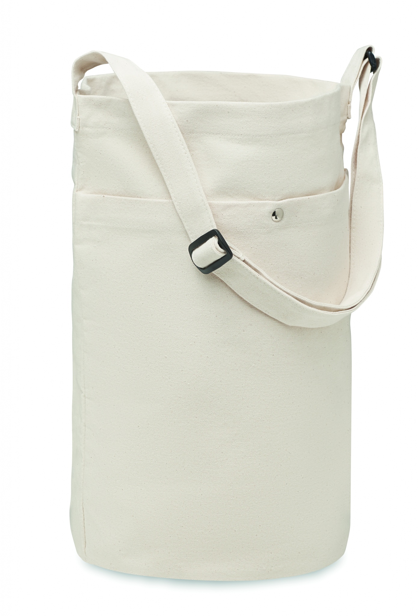 Kangaskassi, jossa pitkä säädettävä olkahihna ja suuri etutasku, jossa on nepparikiinnitys. Sisältää sisätaskun. Materiaali 270 gr/m²canvas.