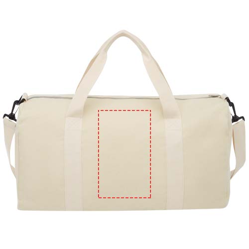 Kierrätetystä puuvillasta ja polyesteriseoksesta valmistettu duffelilaukku, jossa on säädettävä olkahihna. Kierrätetty puuvilla valmistetaan valmistusmateriaalin ylijäämästä, jota syntyy tekstiilitehtaissa leikkaamisen aikana. Laukussa on sekoitettu yhteen samankaltaisia värejä, minkä vuoksi sen värjääminen ei ole tarpeen. Kierrätetyn puuvillan luonteesta johtuen väri saattaa vaihdella hieman.