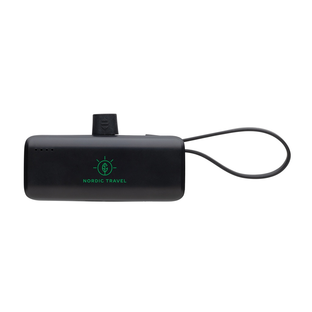 Kannettava ja taskukokoinen virtapankki, joka on helppo ottaa mukaan. Virtapankissa on lightning -liitin, jonka voit helposti yhdistää iPhoneen aloittaaksesi suoran latauksen. 3000 mAh:n virtapankkipankki sisältää myös integroidun USB-C -sisääntulo- ja -lähtökaapelin, jota voidaan käyttää USB-C -laitteiden lataamiseen ja virtapankin uudelleen lataamiseen. Sinun ei tarvitse kantaa mukana kaapeleita käyttääksesi tai ladataksesi uudelleen tätä virtalähdettä. Valmistettu kierrätetystä ABS:stä ja TPE:sta. Kierrätetty kokonaissisältö: 19% tuotteen kokonaispainosta. RCS-sertifiointi varmistaa kierrätysmateriaalien täysin sertifioidun toimitusketjun. Pakattu FSC® pakkaukseen. PVC-vapaa. Tulo: 5V/2.1A Lähtö 5V/2.4A.
