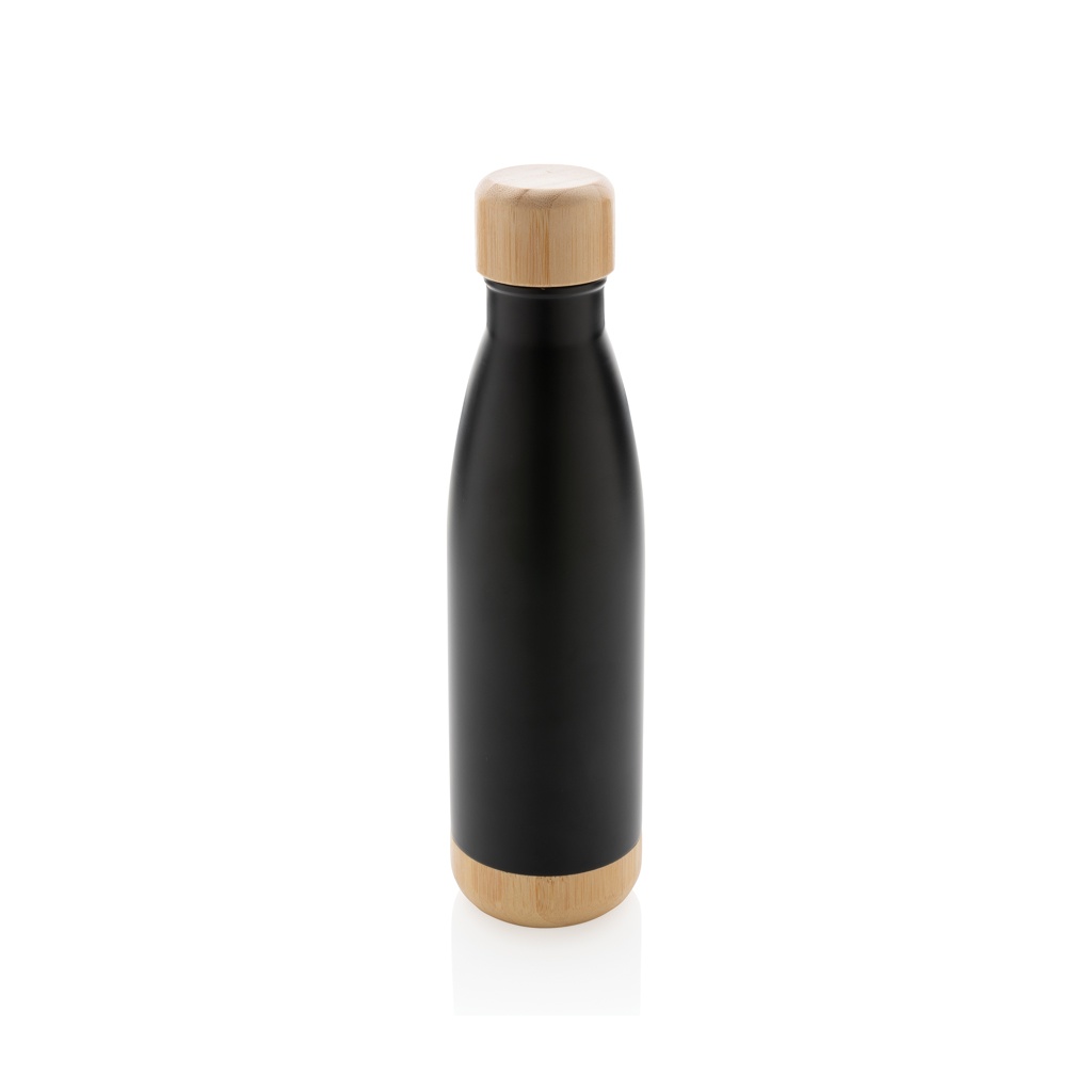 Pullo bambukannella ja -pohjalla ruostumattomasta teräksestä, musta
