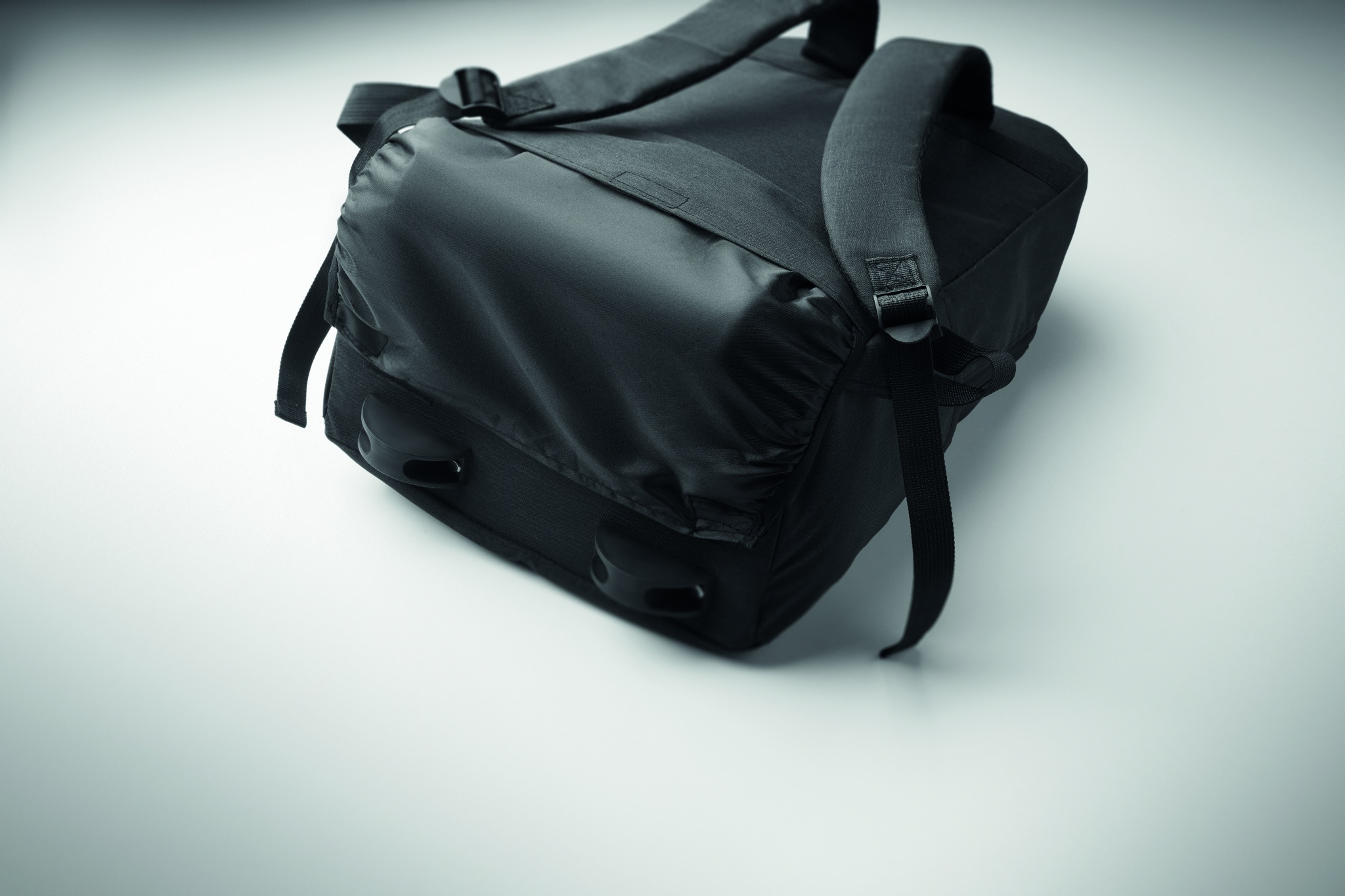 Pyörillä varustettu kannettava reppu 600D RPET-polyesteriä mukautettavalla painatuksella, Musta