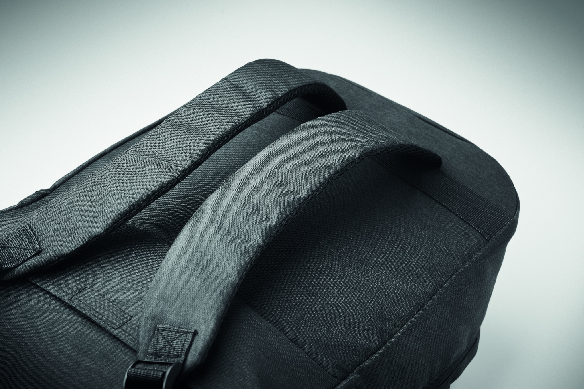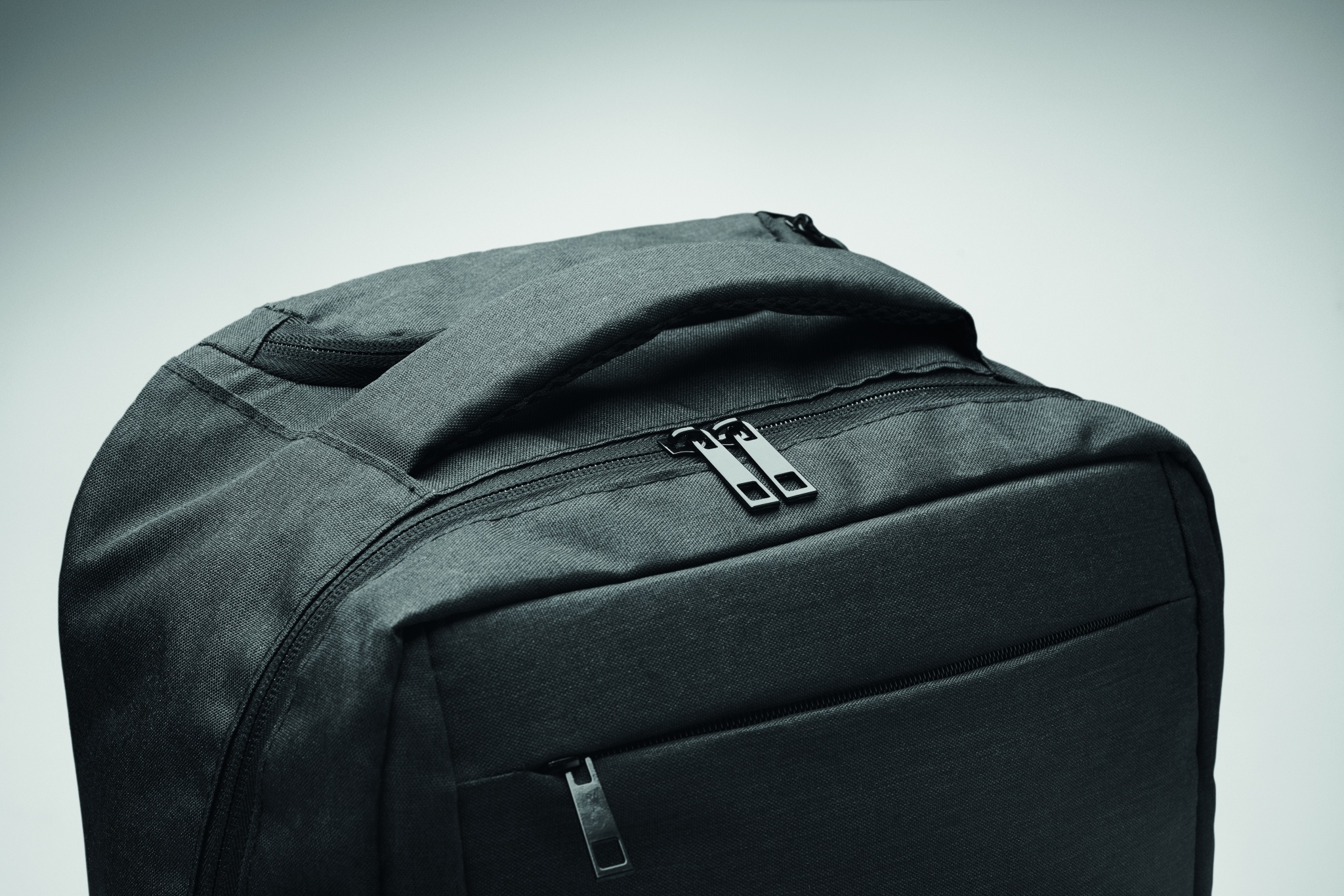 Pyörillä varustettu kannettava reppu 600D RPET-polyesteriä. Sisältää lokeron 15 tuuman kannettavalle tietokoneelle. Vetoketjullinen etutasku. Kaksi sivutaskua. Kolme sisäistä liukutaskua. Pehmustetut selkä- ja olkahihnat. 2 pyörää ja kaksinkertainen putkirunko.