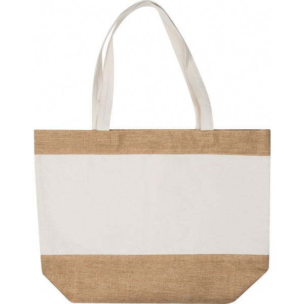 Puuvillasta ja juutista valmistettu ympäristöystävällinen rantalaukku pitkällä kahvalla. Kaikki rantamatkallesi mahtuu tähän. Logosi painetaan toiselle puolelle.