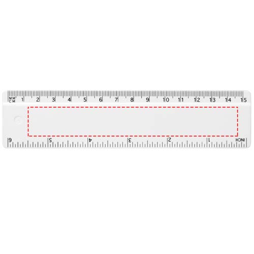 Tukeva kierrätysmuovinen viivain, johon on merkitty tuumat ja senttimetrit.