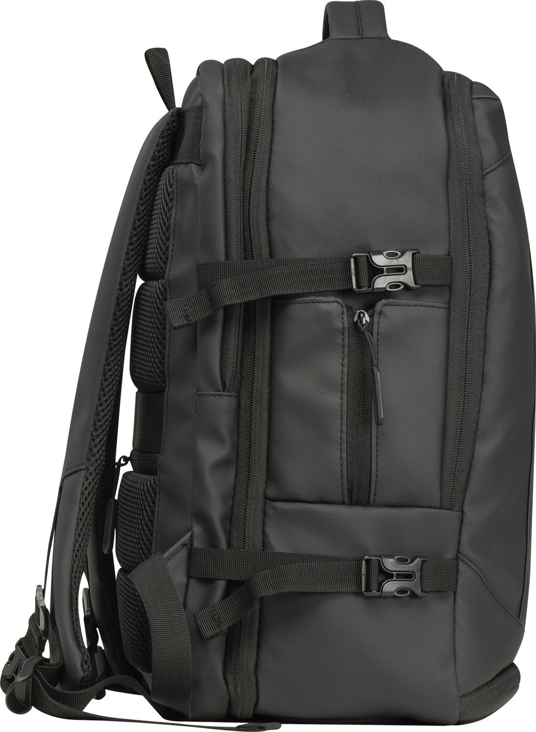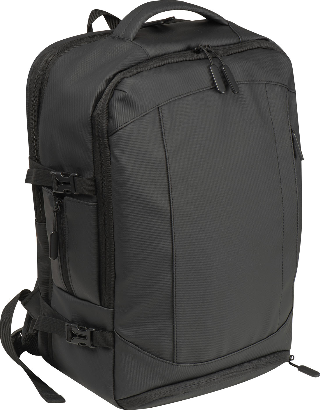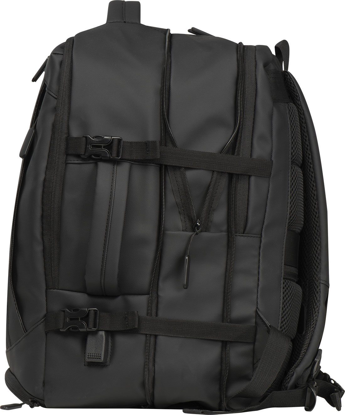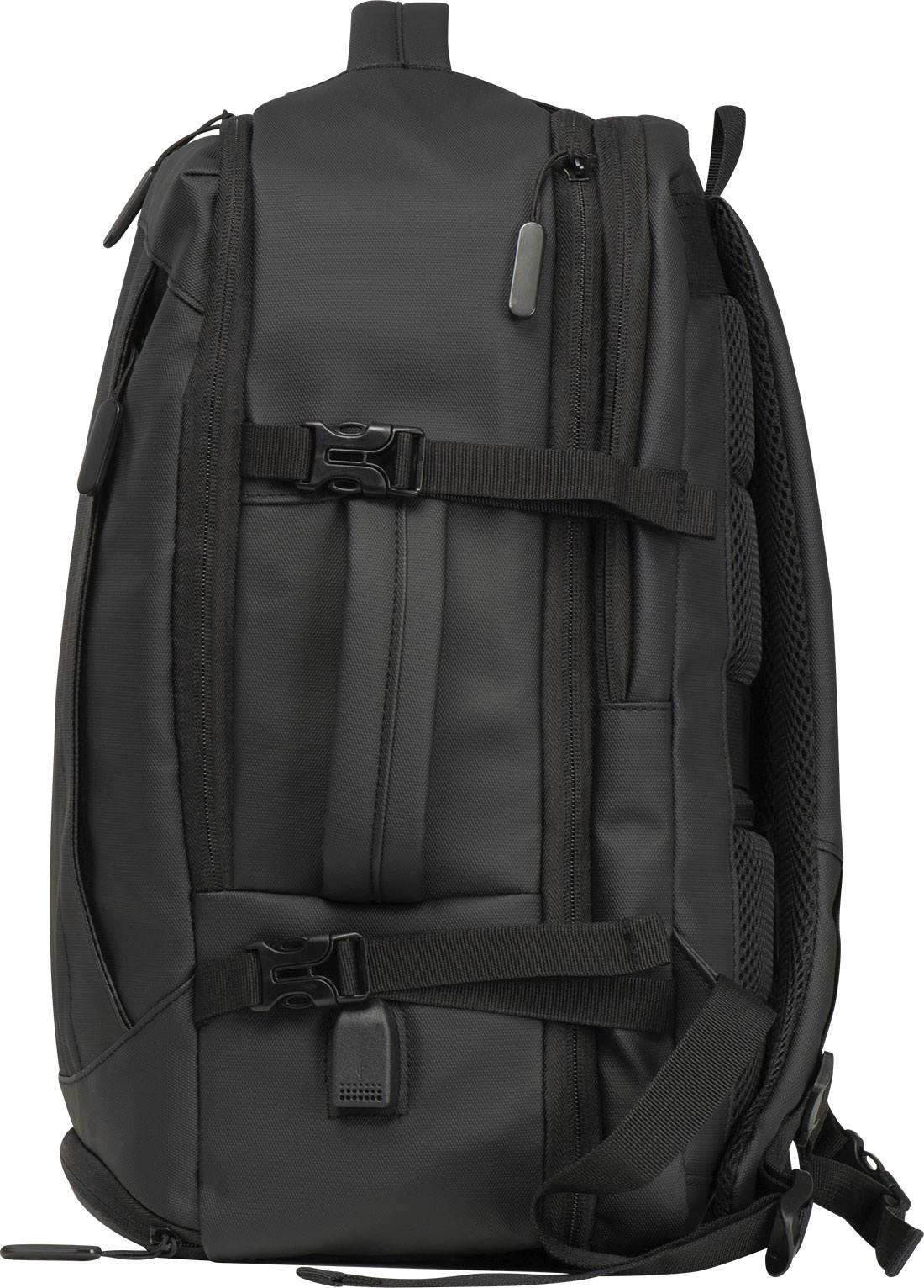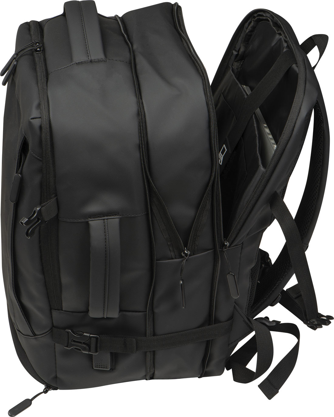 Laadukas reppu 300D polyesterista. Tässä vedenpitävässä repussa on useita osastoja: suljettava lokero kannettavalle tietokoneelle ja lisätasku, turvatasku takana, sivutasku verkkopaneeleella ja laajennettavalla vetoketjulla, likatasku alareunassa, pehmustettu liukutasku edessä, edessä vetoketjullinen tasku, erilaisia sisätaskuja. Lisäksi se sisältää USB-portin kaapelilla, kaksi kantokahvaa, vaunun hihnan, pehmustetut olkaimet, pehmustetun selkänojan ja vetoketjun repun laajentamiseksi. Täydellinen kumppani ei vain työmatkoille.