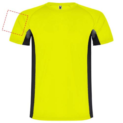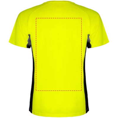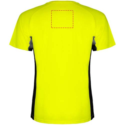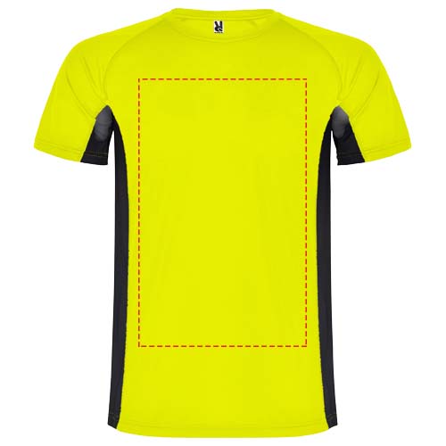 Tekninen ja hengittävä kangas. Kahden polyesterikankaan yhdistelmä: Pääkangas bird's eye -kangasta, reunaosat ja hihan sisäpuoli mikrokuitukangasta. Pyöreä pääntie, jossa vahvistetut koristesaumat sisäpuolella. Irrotettava etiketti.