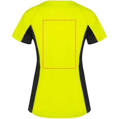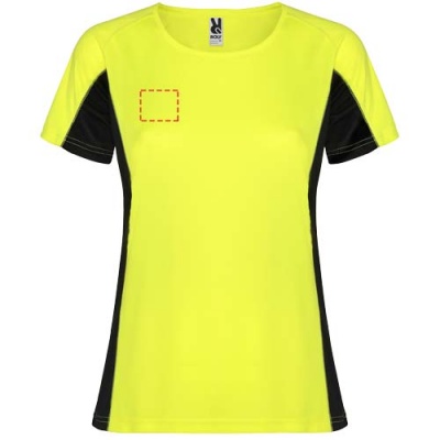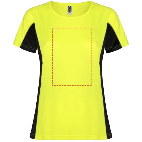 Tekninen ja hengittävä kangas. Kahden polyesterikankaan yhdistelmä: Pääkangas bird's eye -kangasta, reunaosat ja hihan sisäpuoli mikrorei'itettyä kangasta. Pyöreä pääntie, jossa vahvistetut koristesaumat sisäpuolella. Irrotettava etiketti.