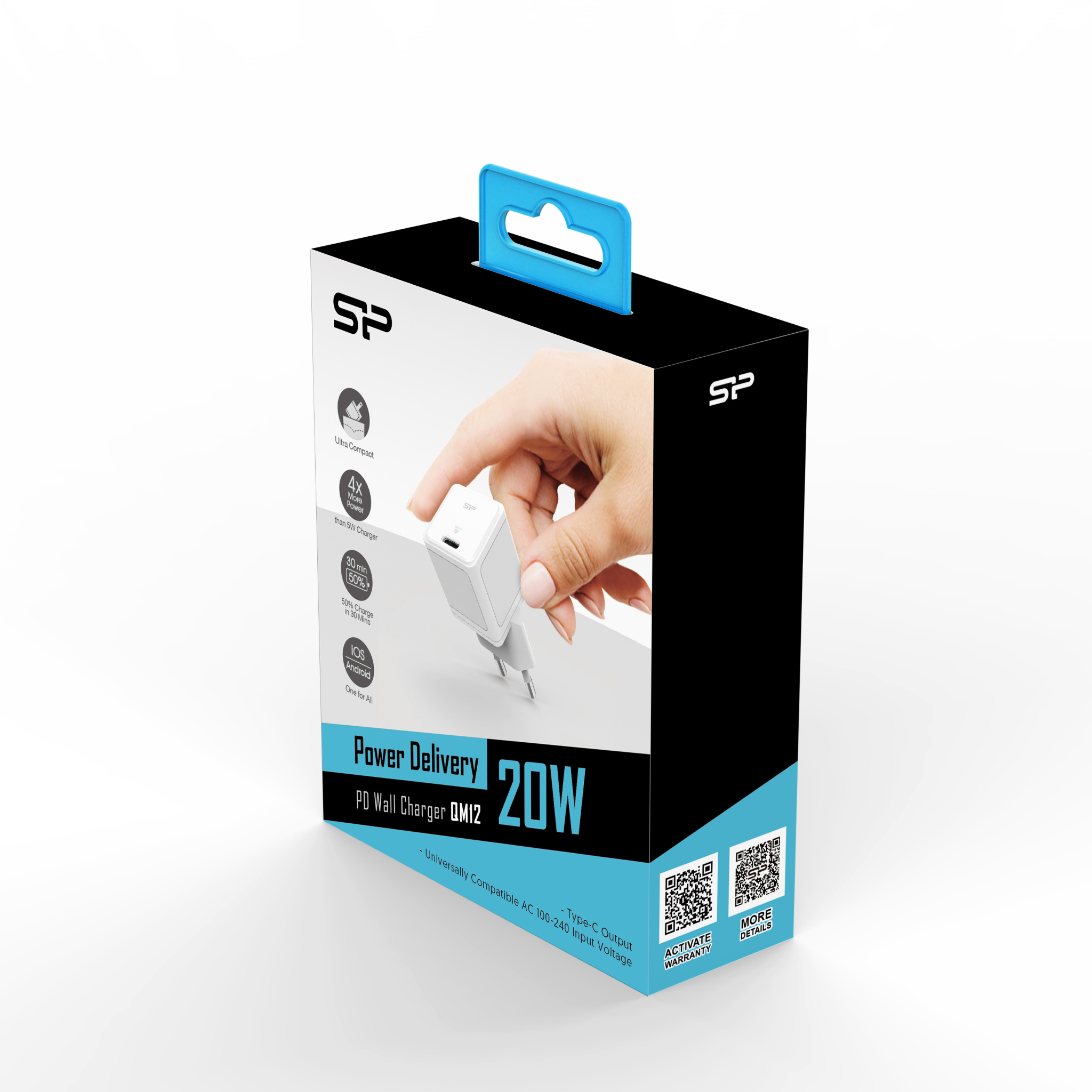 Silicon Powerin QM12-seinälaturi on ainutlaatuinen yhdistelmä pientä laitekokoa ja suurta lataustehoa. Se on 50 % pienempi kuin tavalliset laturit ja tarjoaa jopa 20 W lataustehon. Laite on varustettu USB Type-C -portilla, joka varmistaa yhteensopivuuden useimpien laitteiden kanssa.