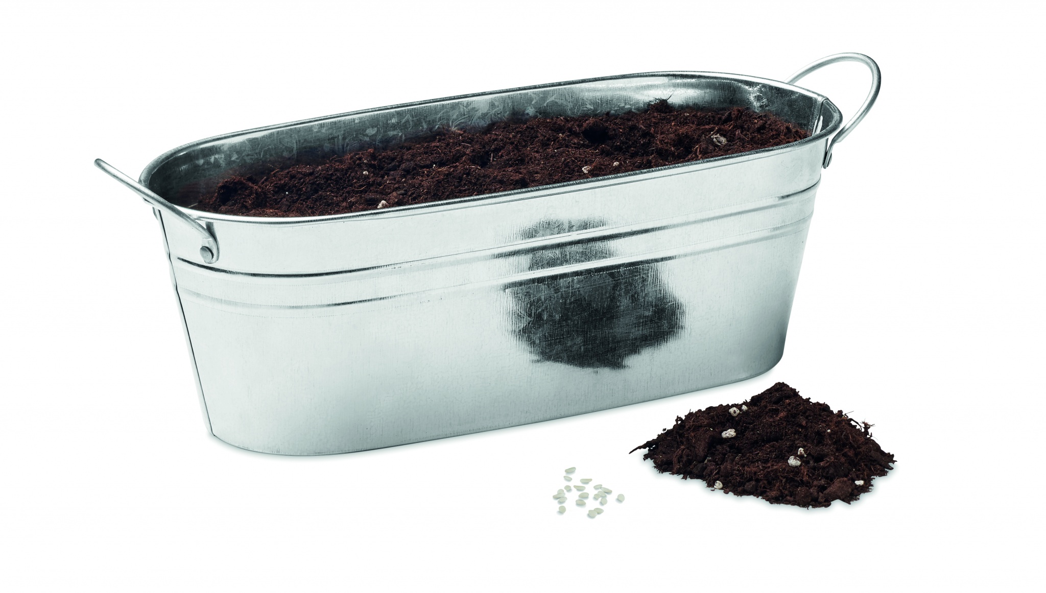 Sinkkinen kasvikylpy 3 yrttivalikoimalla. Sisältää basilikan, timjamin, persiljan siemeniä ja puutarhakompostin.