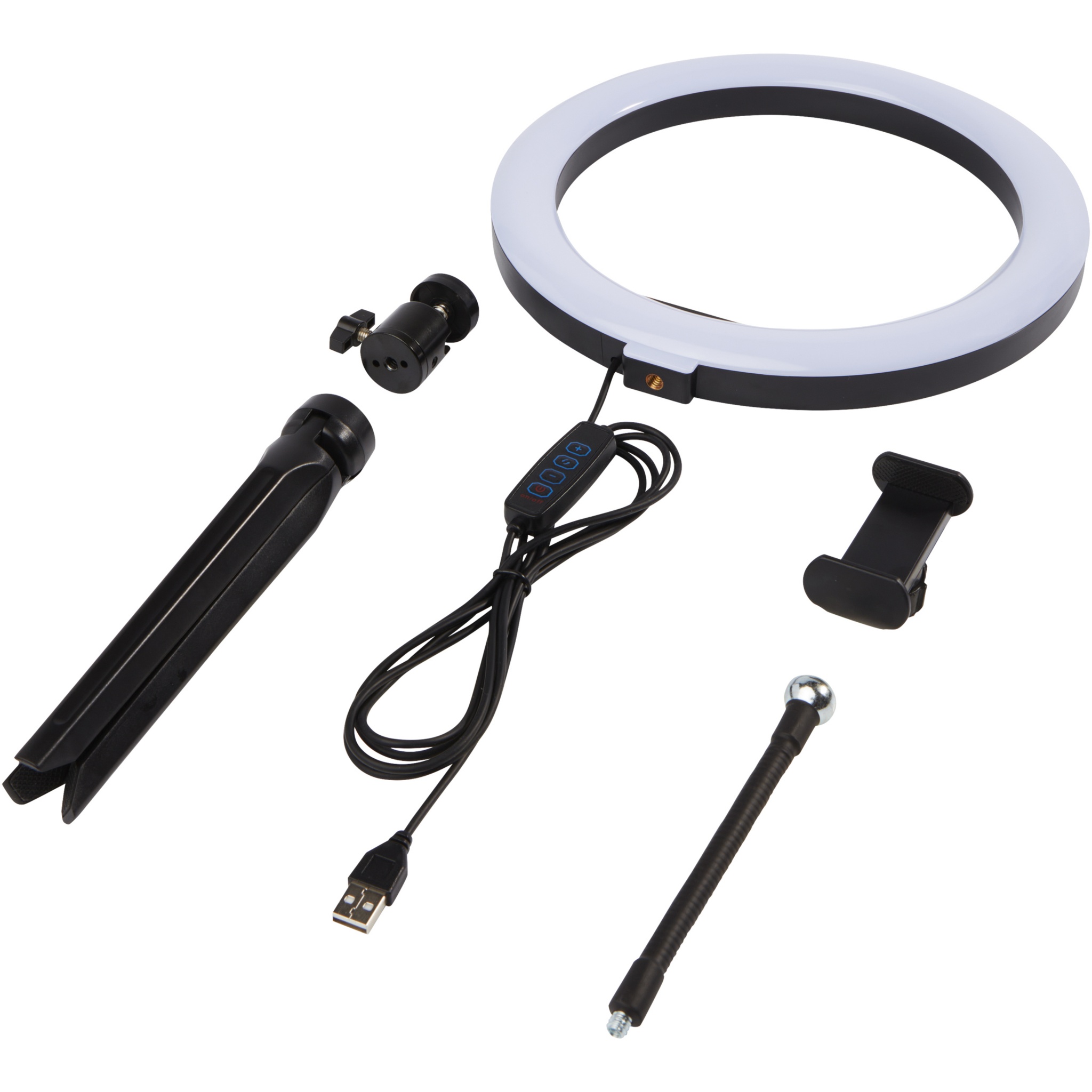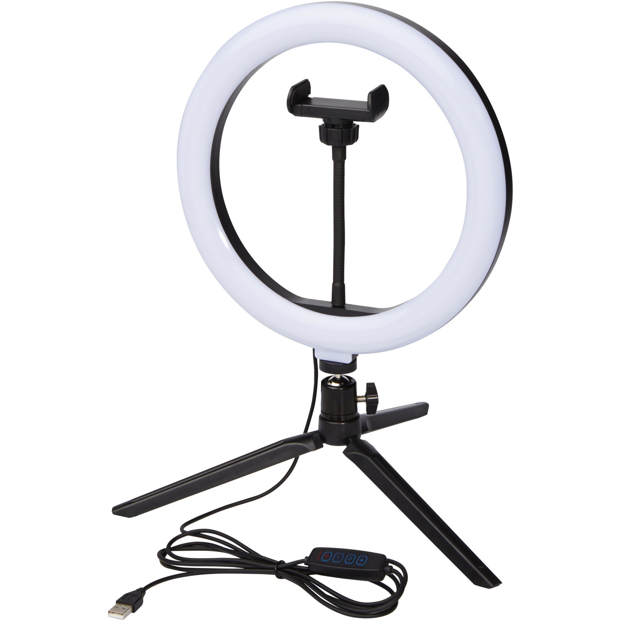 Logo trade mainostuotet tuotekuva: Studio rengasvalo selfieitä ja vloggaamista varten, puhelintelineellä ja jalustalla